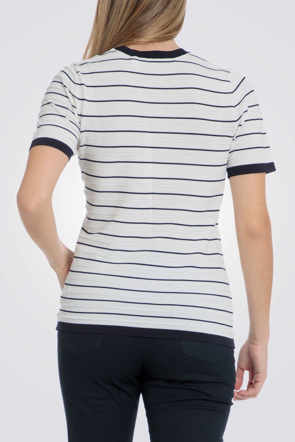 סריג לנשים מבית המותג PUNT ROMA, עם הדפס פסים בצבעי לבן/נייבי, בעל שרוולים קצרים וצווארון וי.