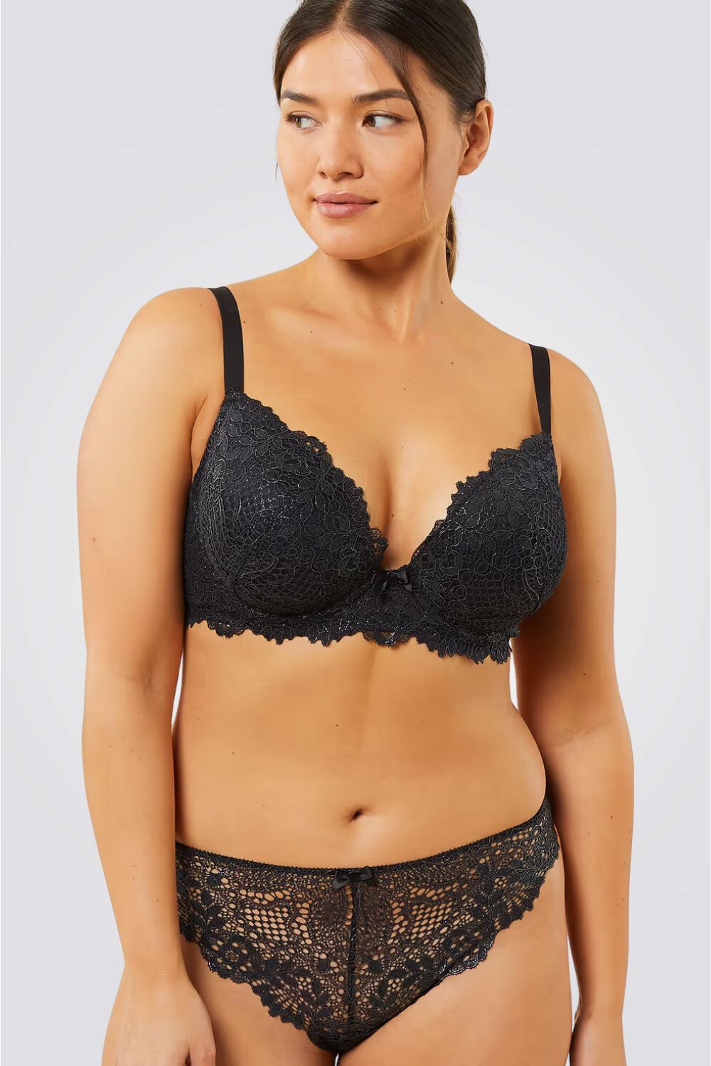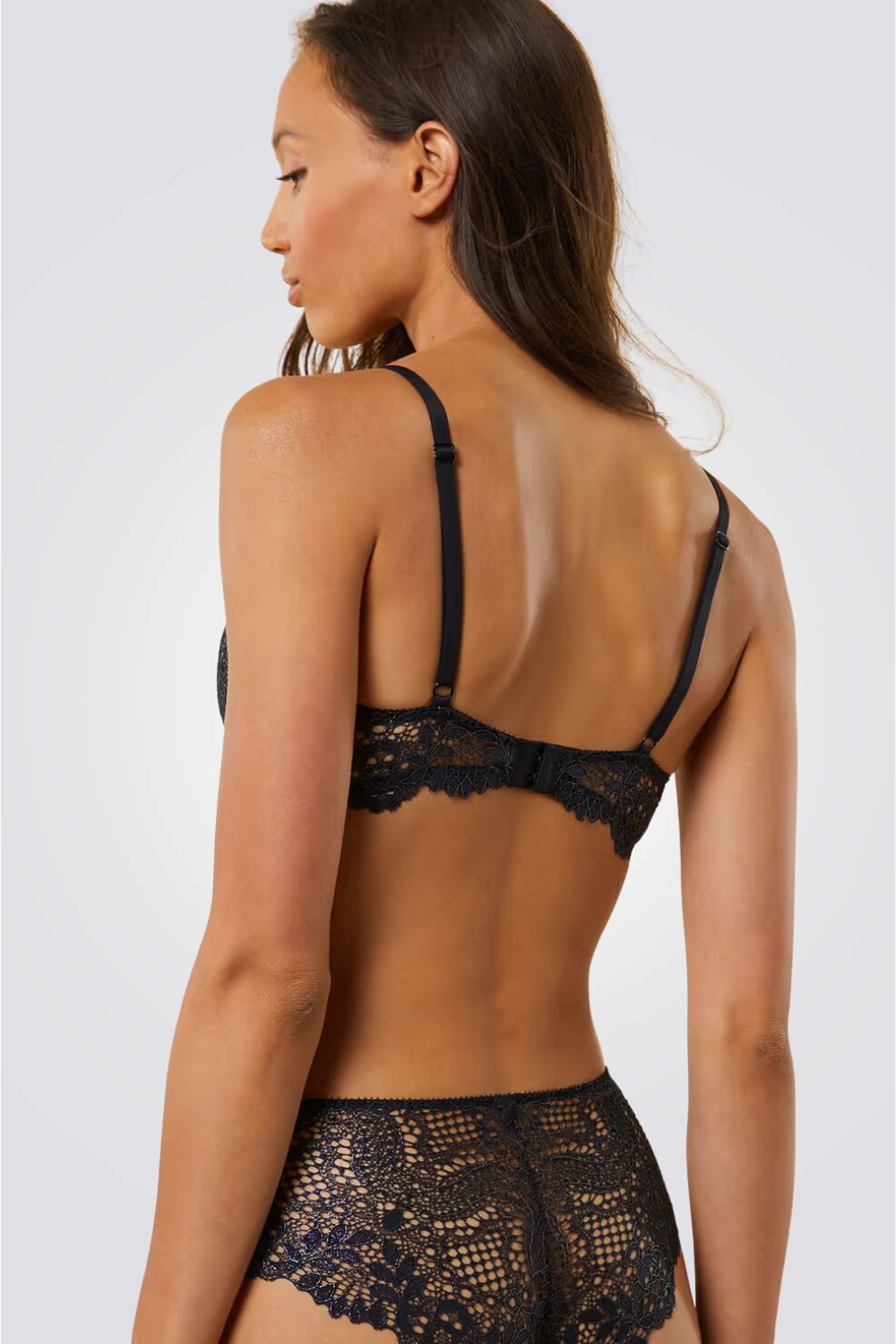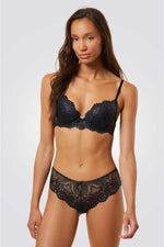 חזייה מרופדת מבית המותג ETAM, בעל עיטורי תחרה מיוחד על כל שטח החזייה, פפיון קטן בחזק הקידמי, כתפיות מתכווננות להתאמה אישית ורצועת גב רחבה עם סגירת קרסים לתמיכה ונוחות מקסימלית לאורך כל היום.