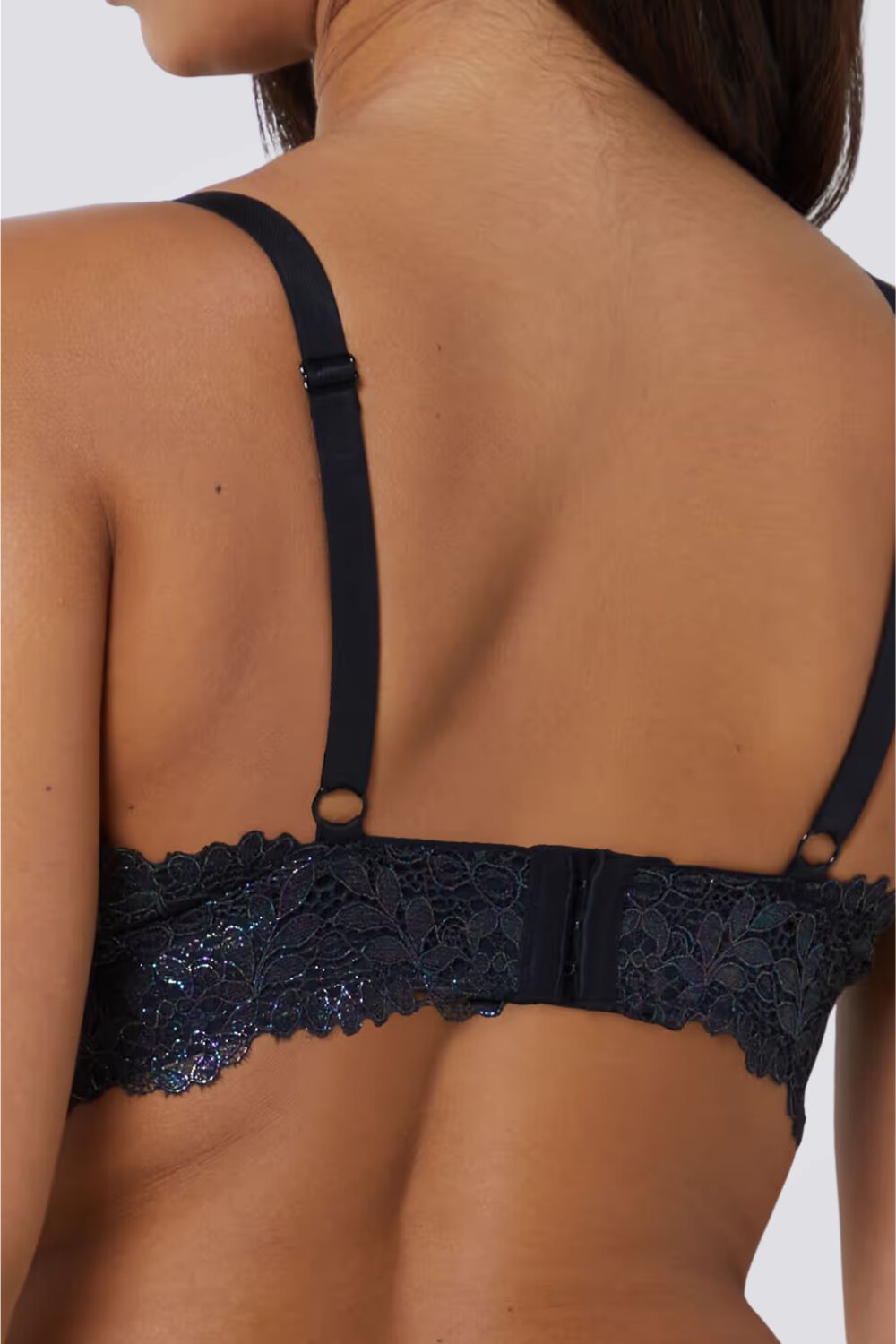 ברלט מבית המותג ETAM, עשוי מבד תחרה עדין ונוצץ, ללא ריפוד וברזלים, בעל כתפיות דקות ומתכווננות עם סגירת קרסים אחורית.