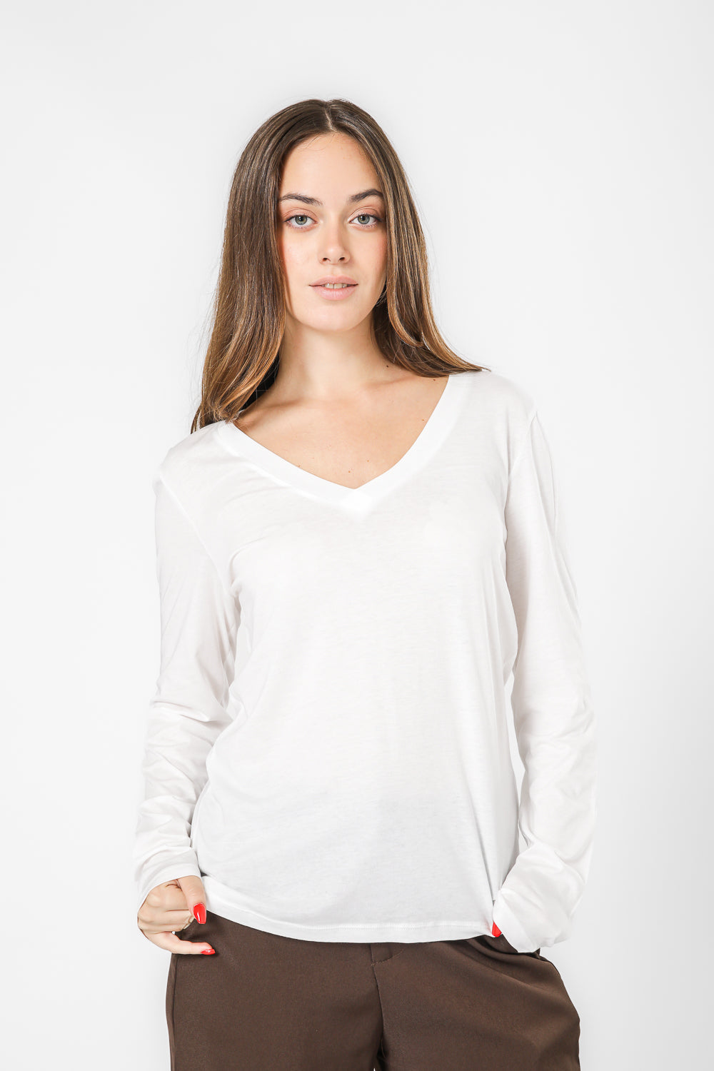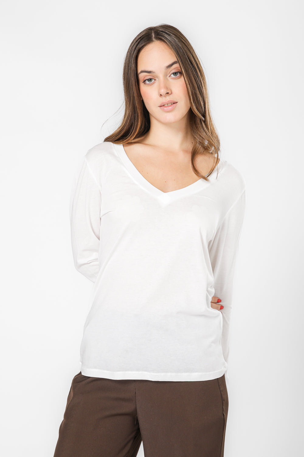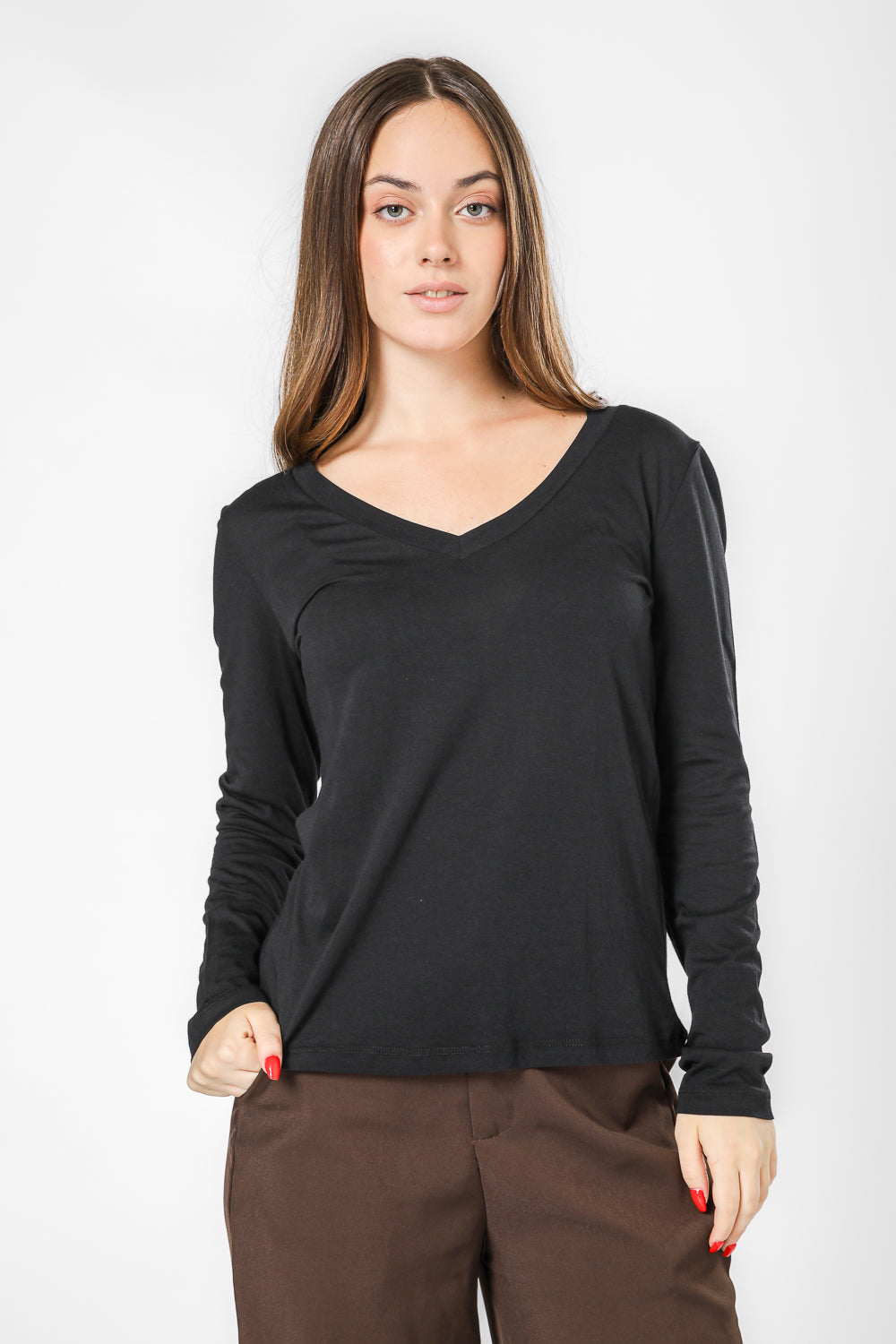 חולצת בייסיק עם שרוולים ארוכים ומפתח צוואר וי מבית המותג DELTA העשויה בד סופימה כותנה ומודל ובגזרה קלאסית.