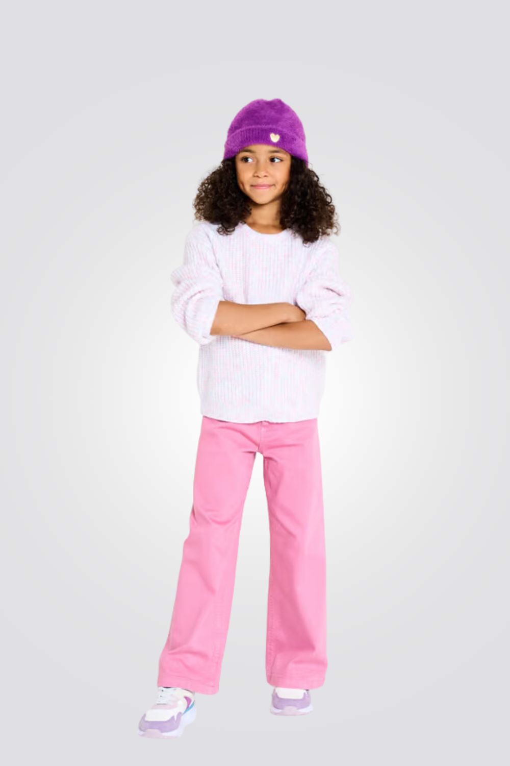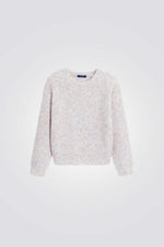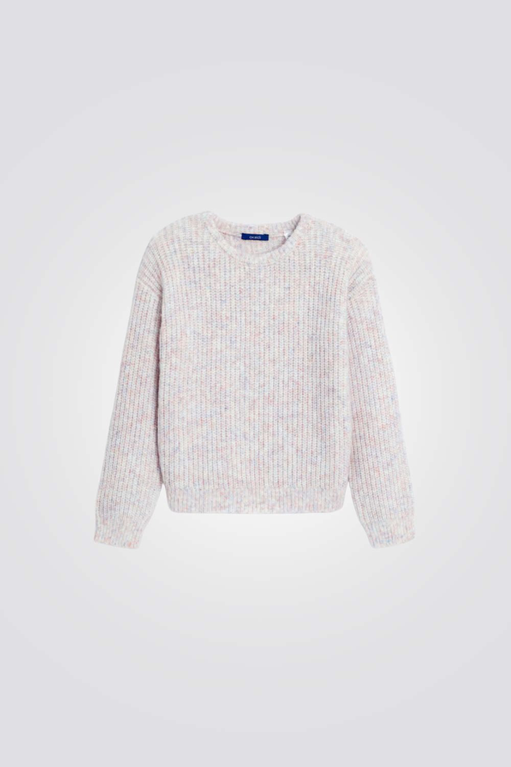 סוודר לילדות מבית המותג OKAIDI, מחמם ונעים, באפקט צבעוני פסטלי , סגזרה ישרה, שרוולים ארוכים וצווארון עגול.