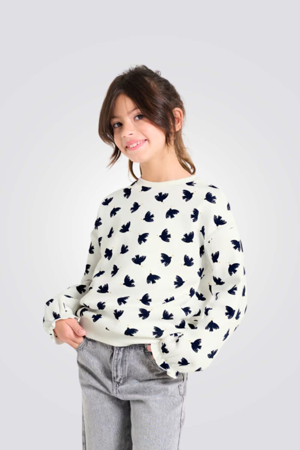 סווטשירט לילדות בצבע לבן עם הדפס ציפורים