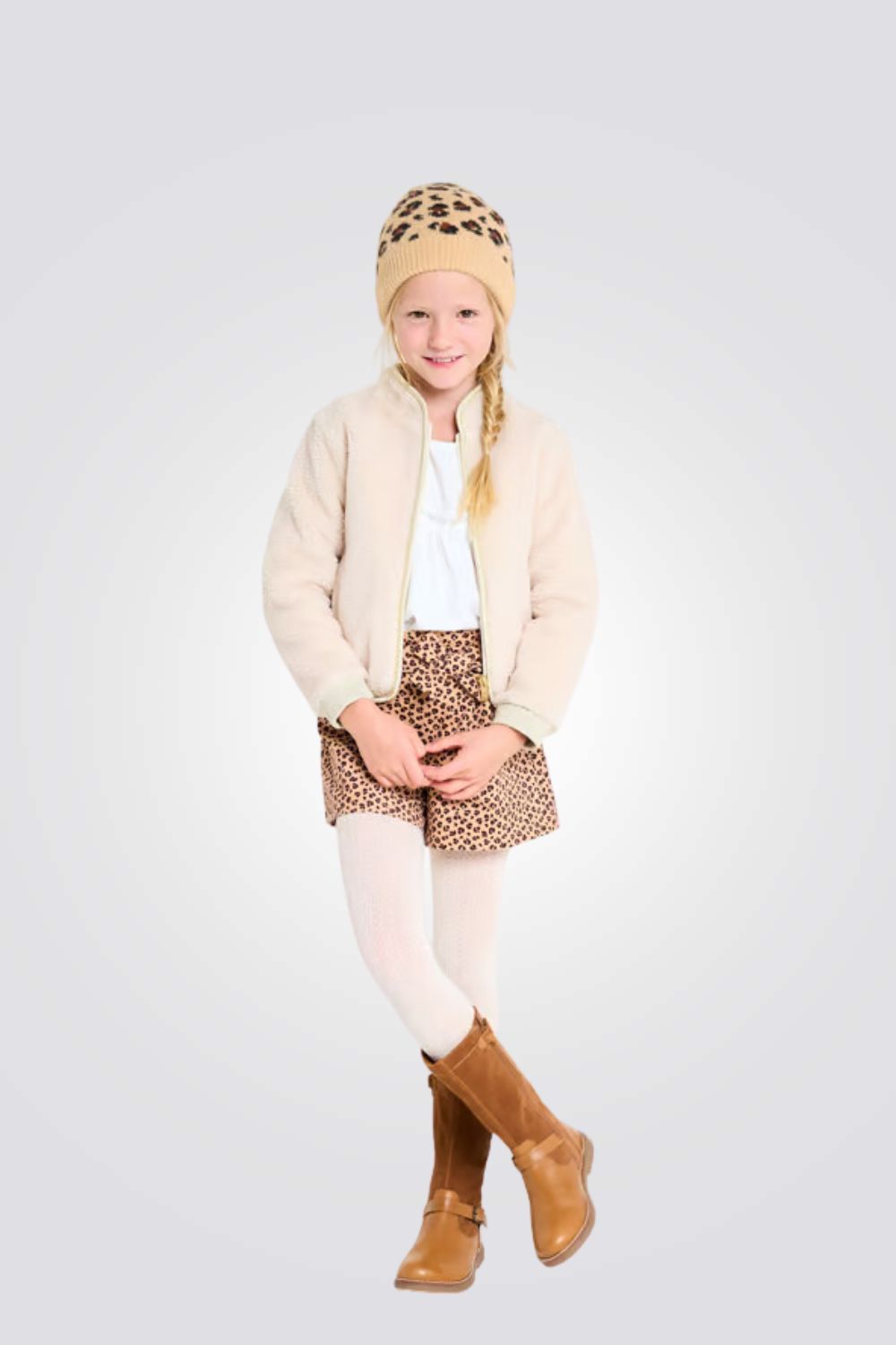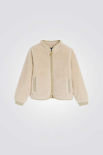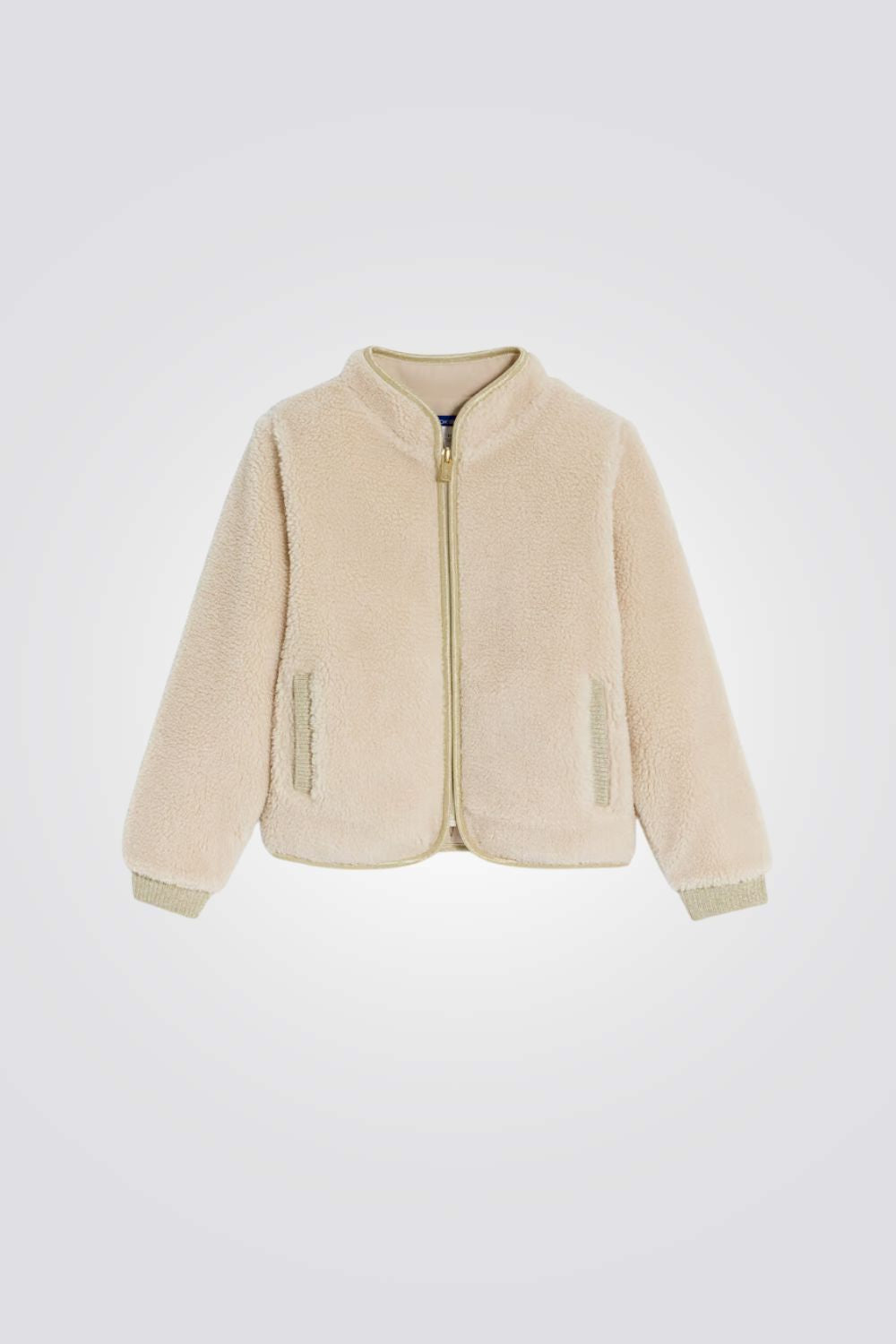 ג'קט לילדות מבית המותג OKAIDI, בצבע בז' , רך ומחמם מאוד, בגזרה ישרה עם צווארון מעט גבוהה, סגירת רוכסן ושני כיסים צדדיים.