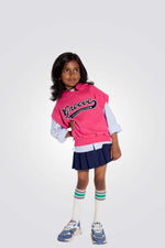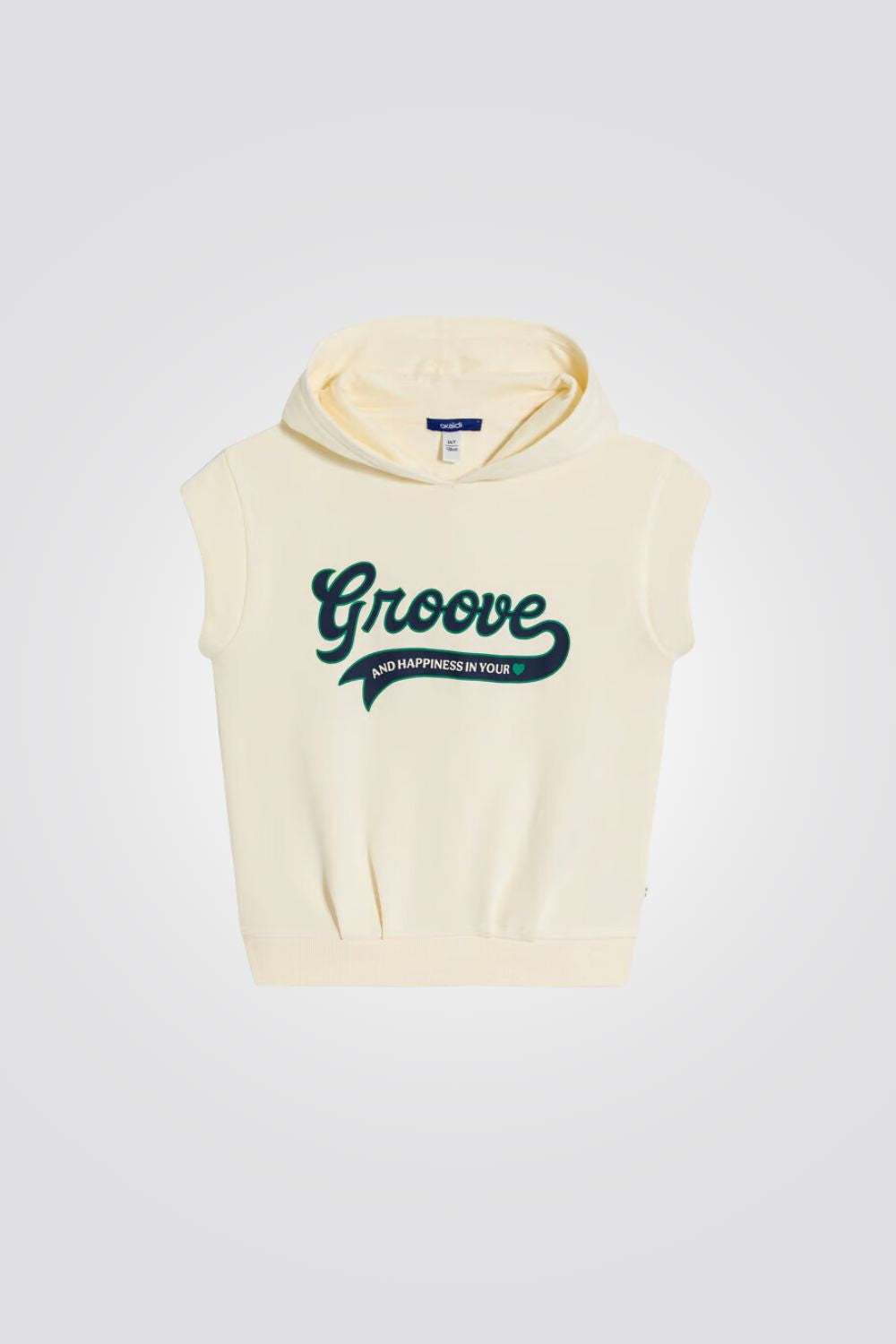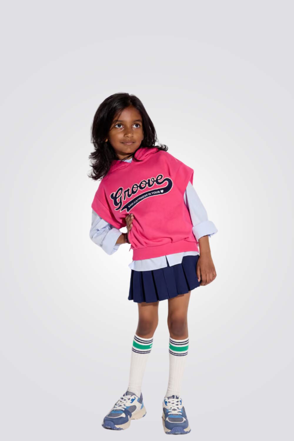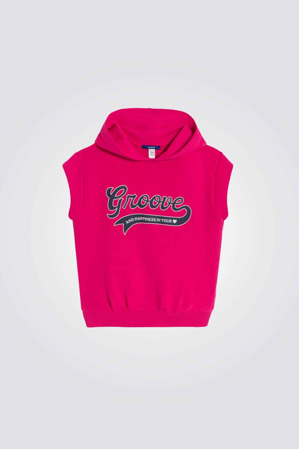סווטשירט ווסט לילדות מבית המותג OKAIDI, עם קפוצ'ון , ללא שרוולים ועם סיומת גומי , מחמם ונעים עם הדפס מקדימה.