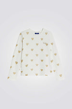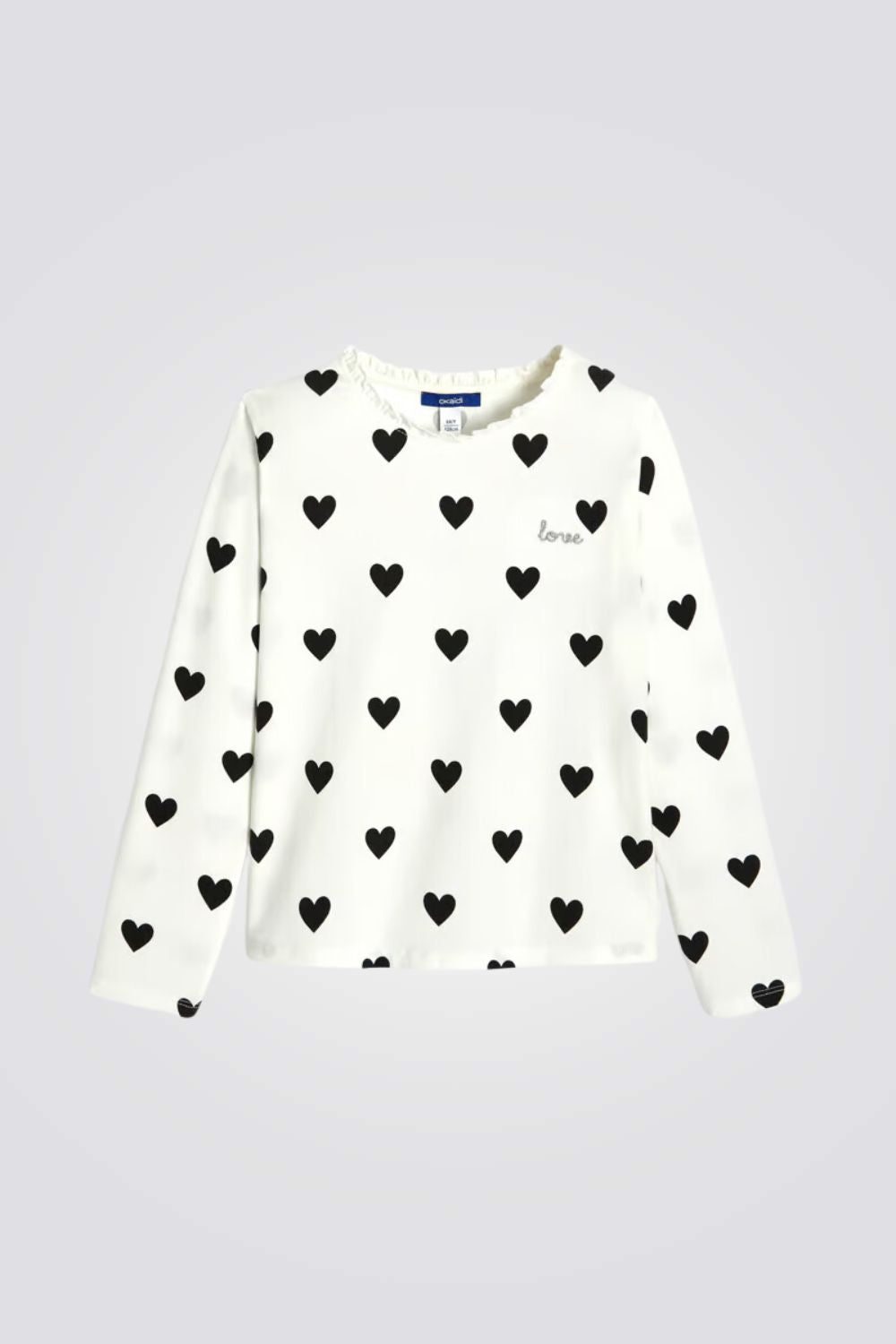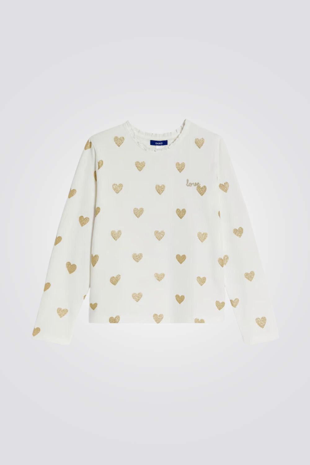 טשירט לילדות עם שרוולים ארוכים והדפס לבבות