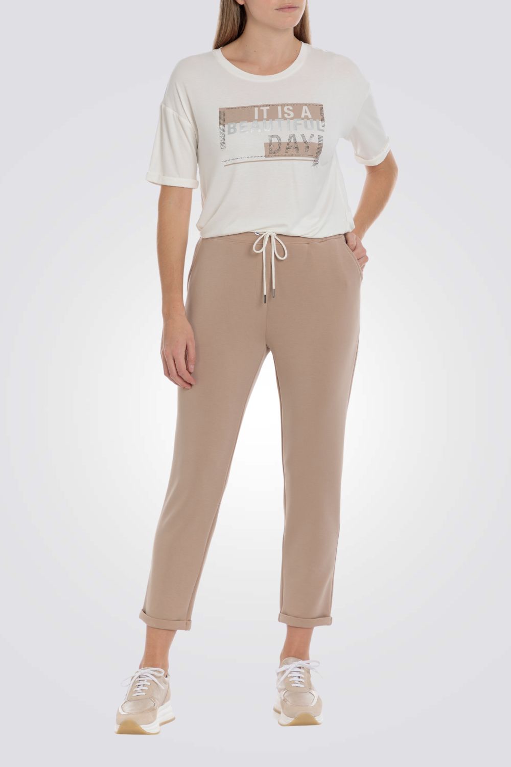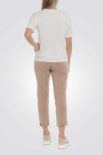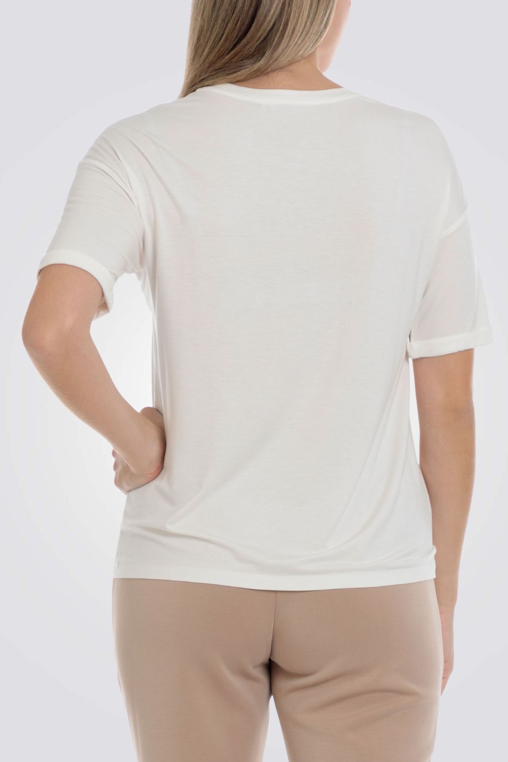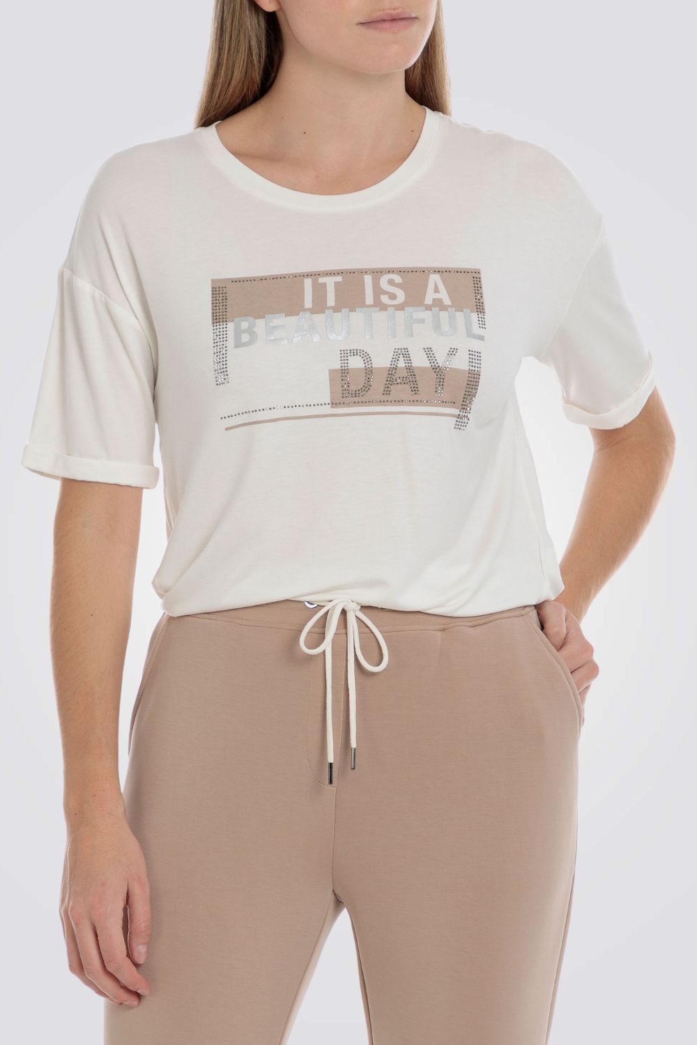 חולצת טי עם שרוולים קצרים בצבע לבן ובז'