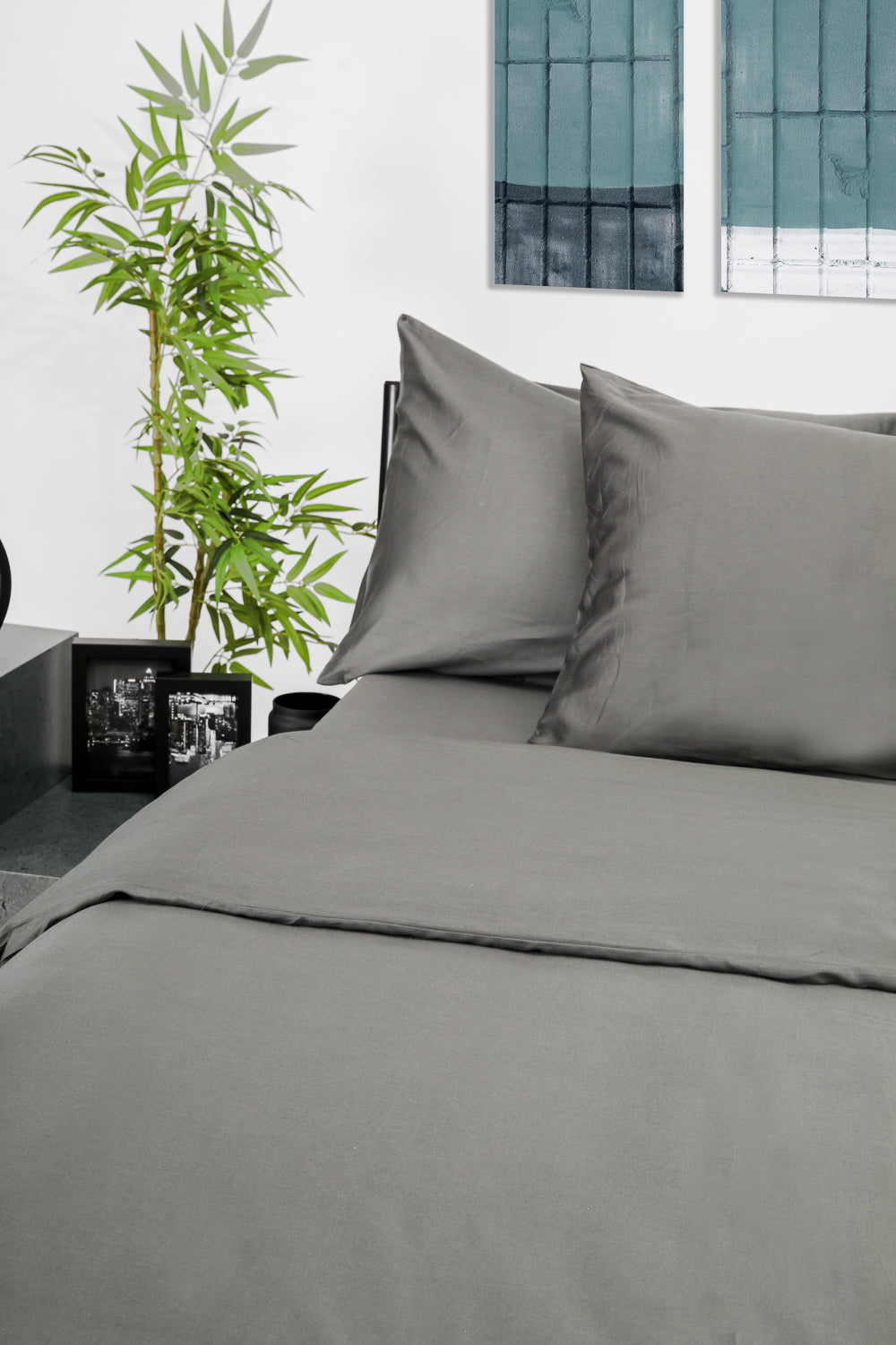 סדין מיטה זוגית רחבה מאוד 200/200 100% כותנה באריגת סאטן בצבע אפור כהה