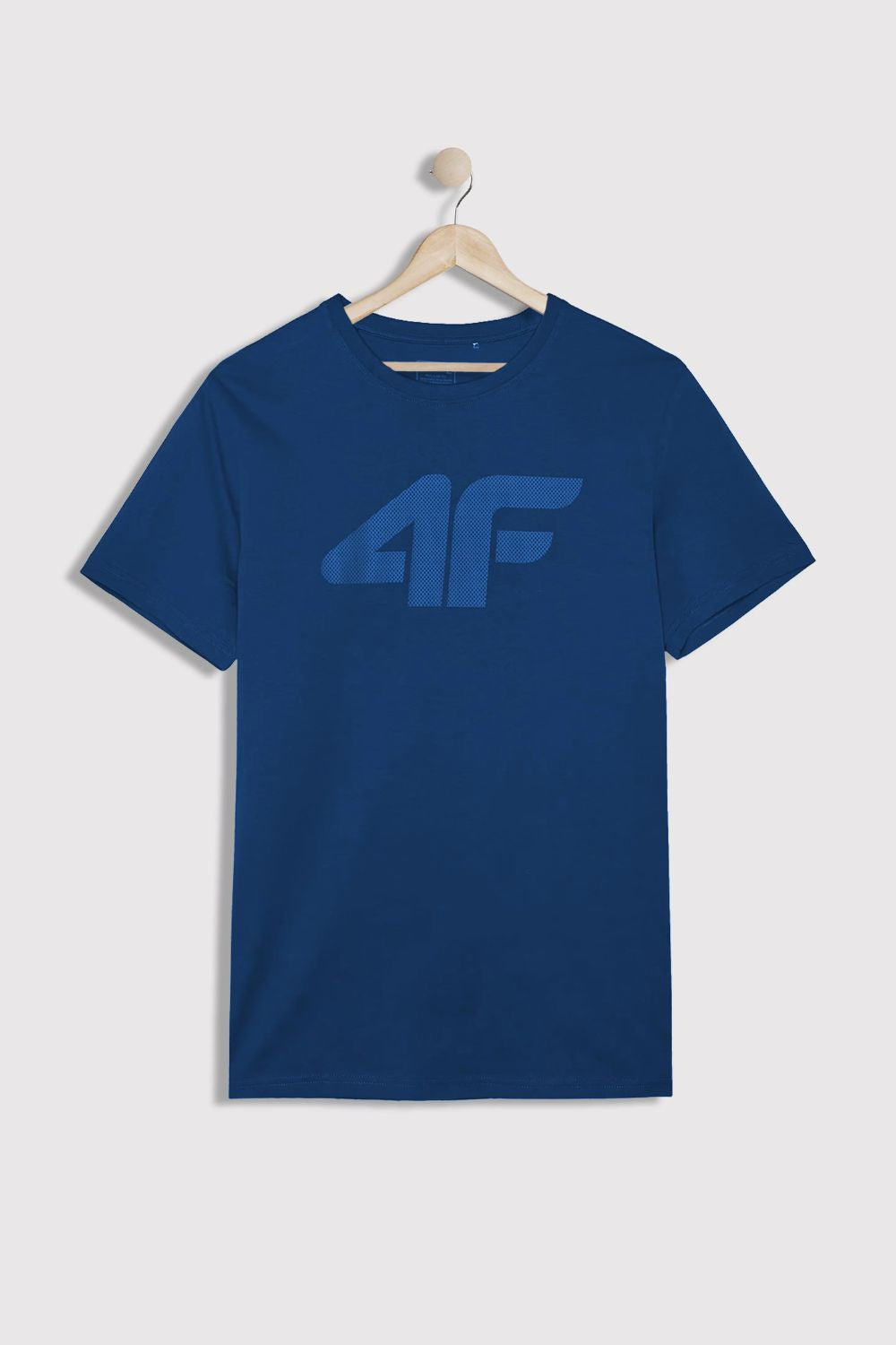 חולצת טישירט מבית המותג 4F בצבע כחול עם הדפס לוגו בחזית החולצה, צווארון עגול ושרוולים קצרים.