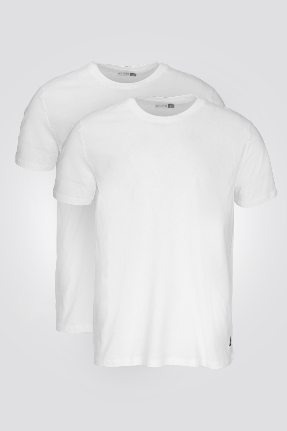 זוג חולצות טי שרט מבית המותג NAUTICA בצבע לבן לגברים, בעלות שרוול קצר, צווארון עגול ועם סמל המותג שחור.