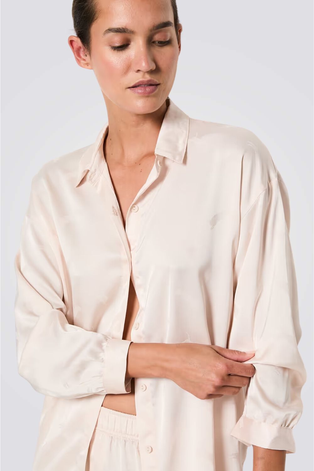 חולצת פיג'מה מסאטן TIGER JACQUARD בצבע ורוד בהיר
