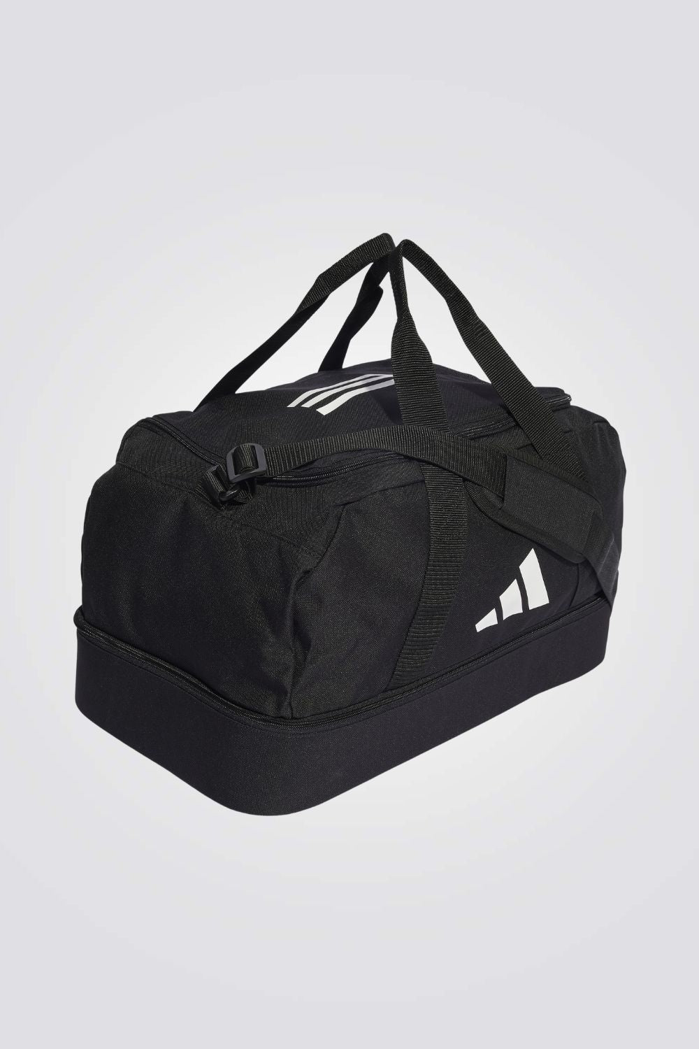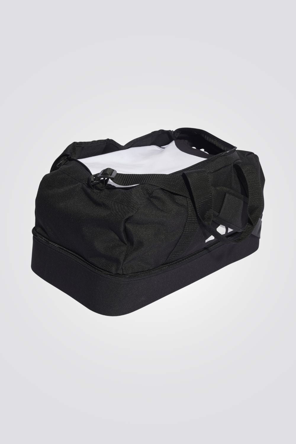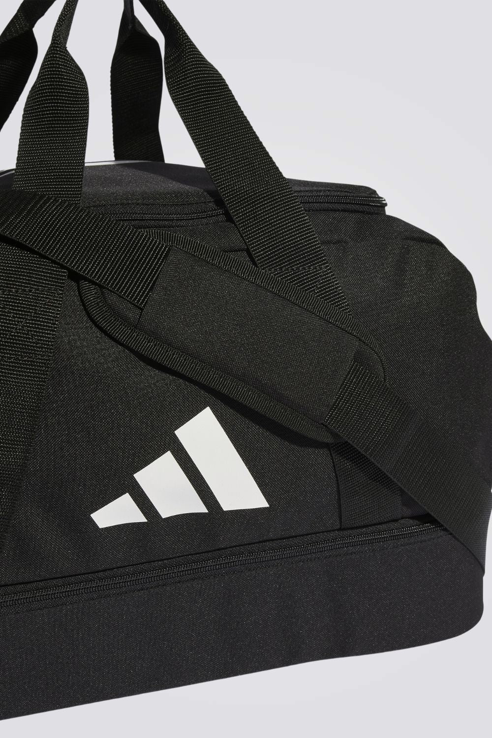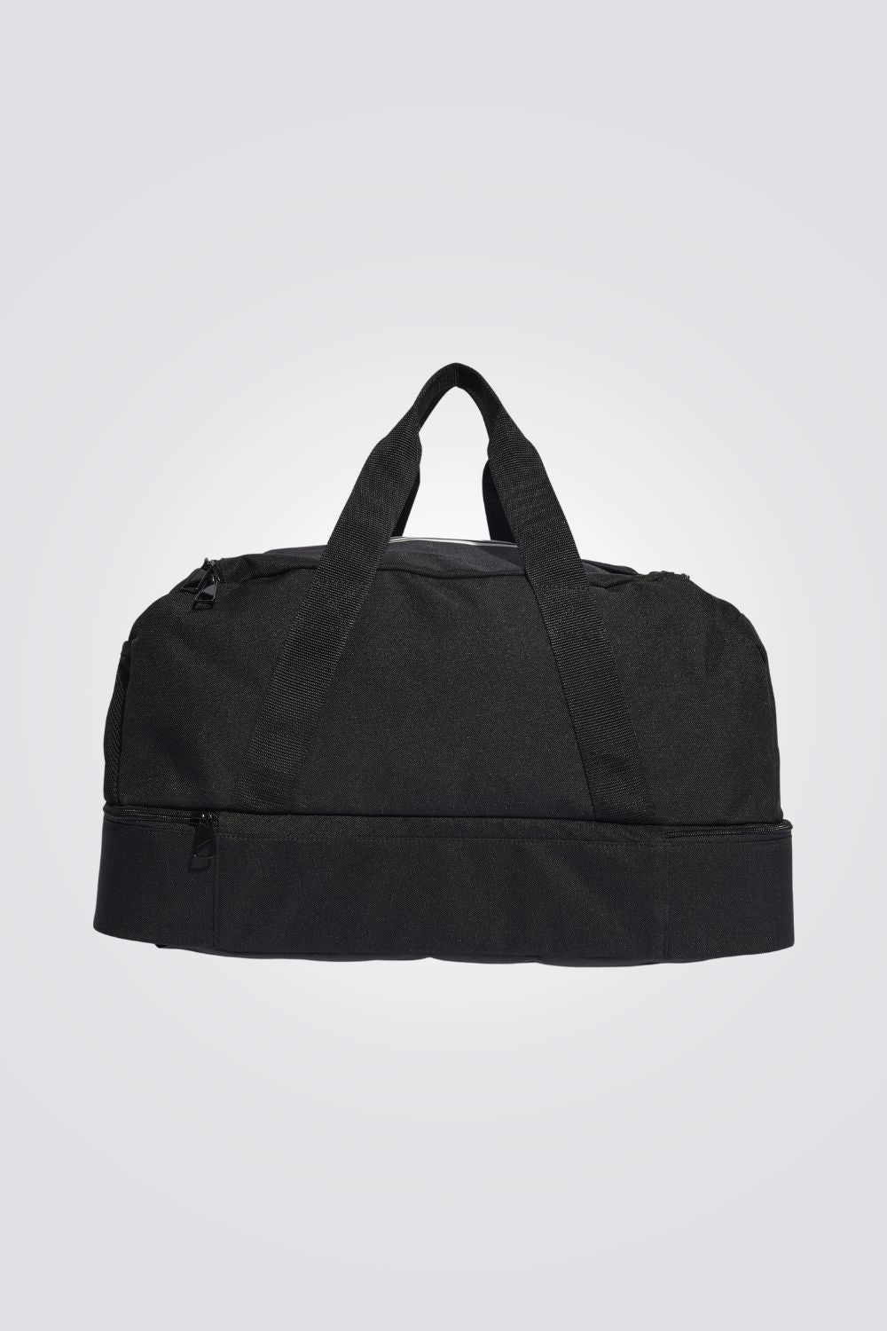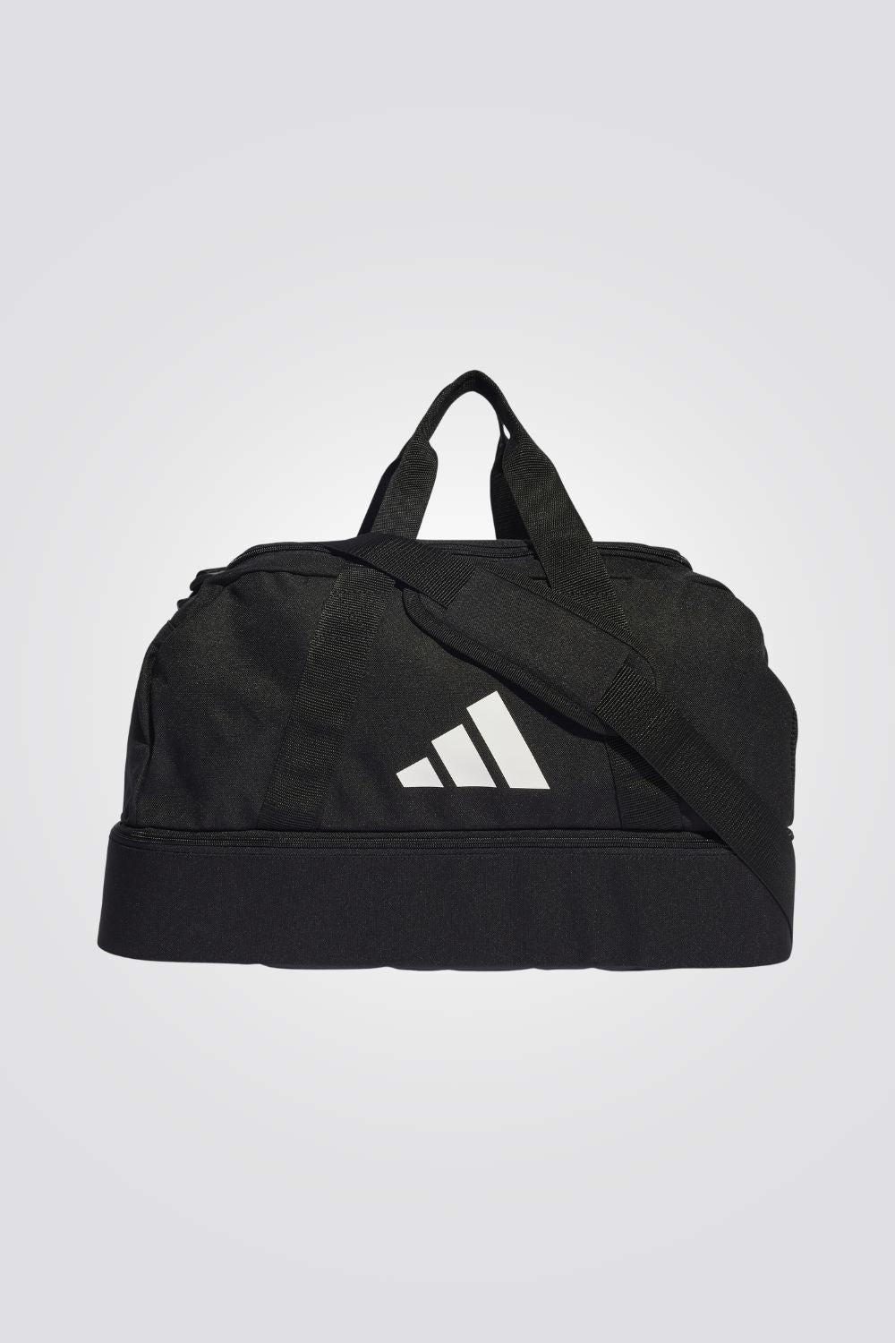 תיק אימון מבית המותג ADIDAS בצבע שחור עם סמל המותג בלבן בקידמת התיק, בעל תא עליון רחב, שתי ידיות אחיזה, רצועת כתף מרופדת, כיס רשת צדדי ותא תחתון עם נרתיק קשיח לעמידות נוספת.