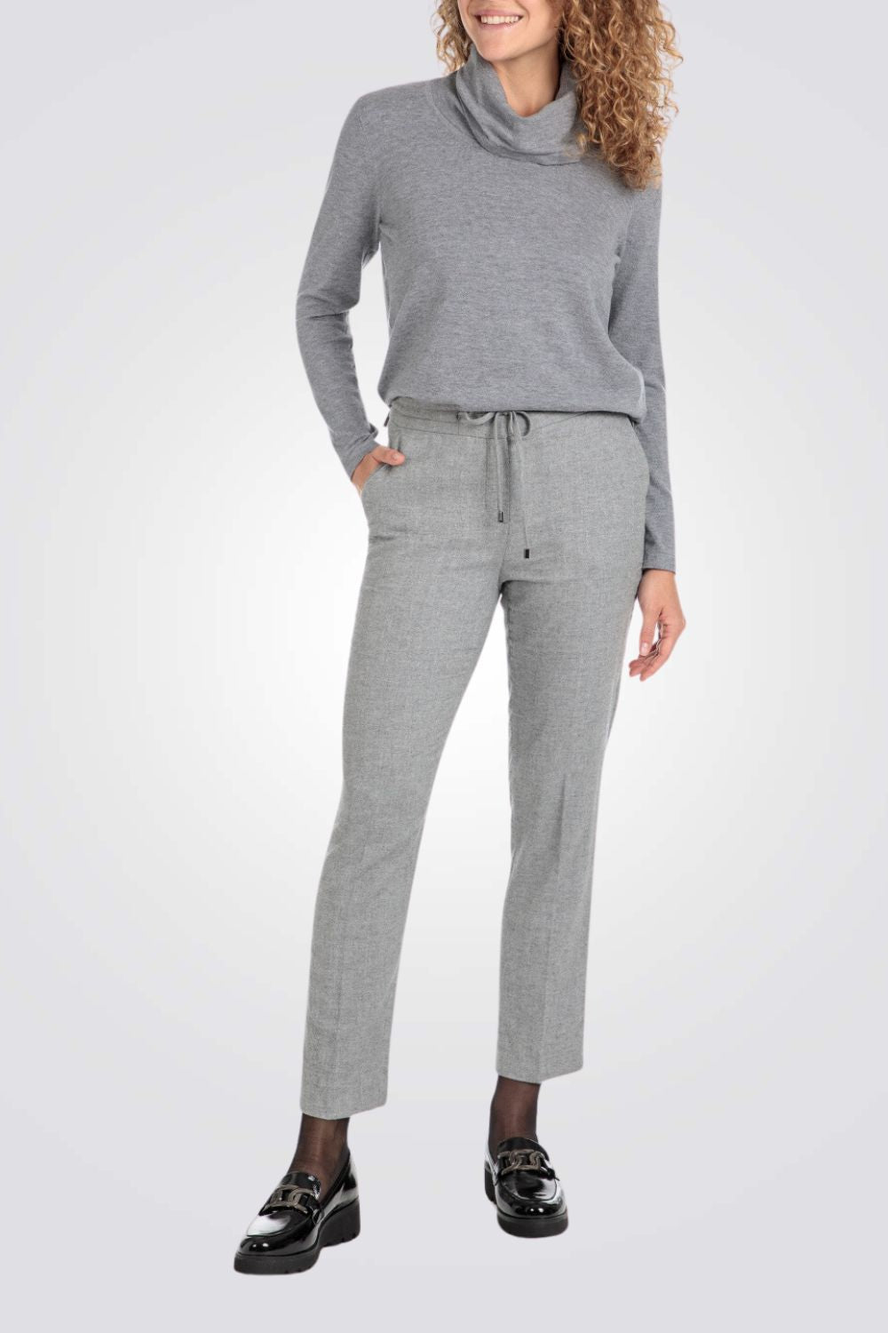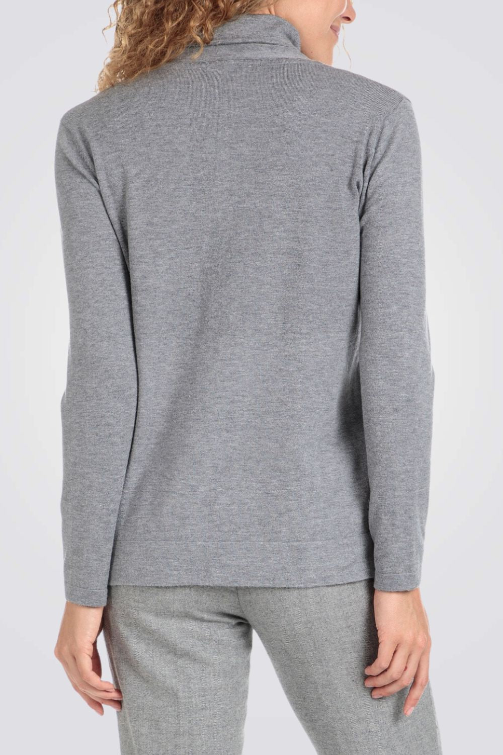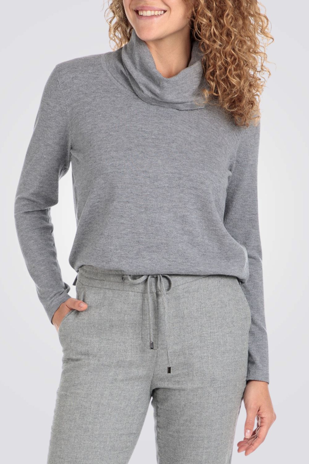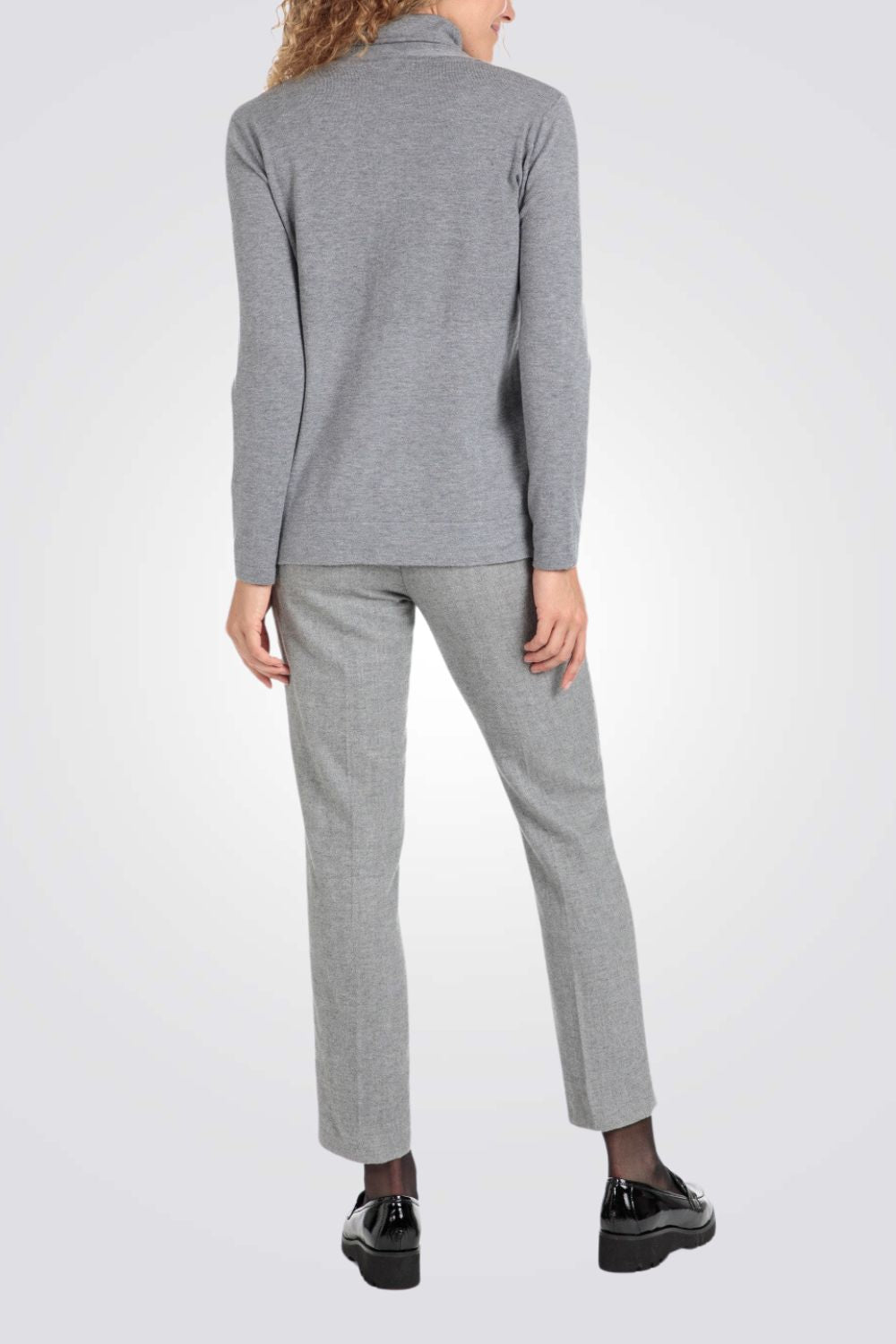 סריג לנשים מבית המותג PUNT ROMA בצבע אפור מלאנז', עם שרוולים ארוכים, צווארון גולף משוחרר ושסעים בצידי החולצה.