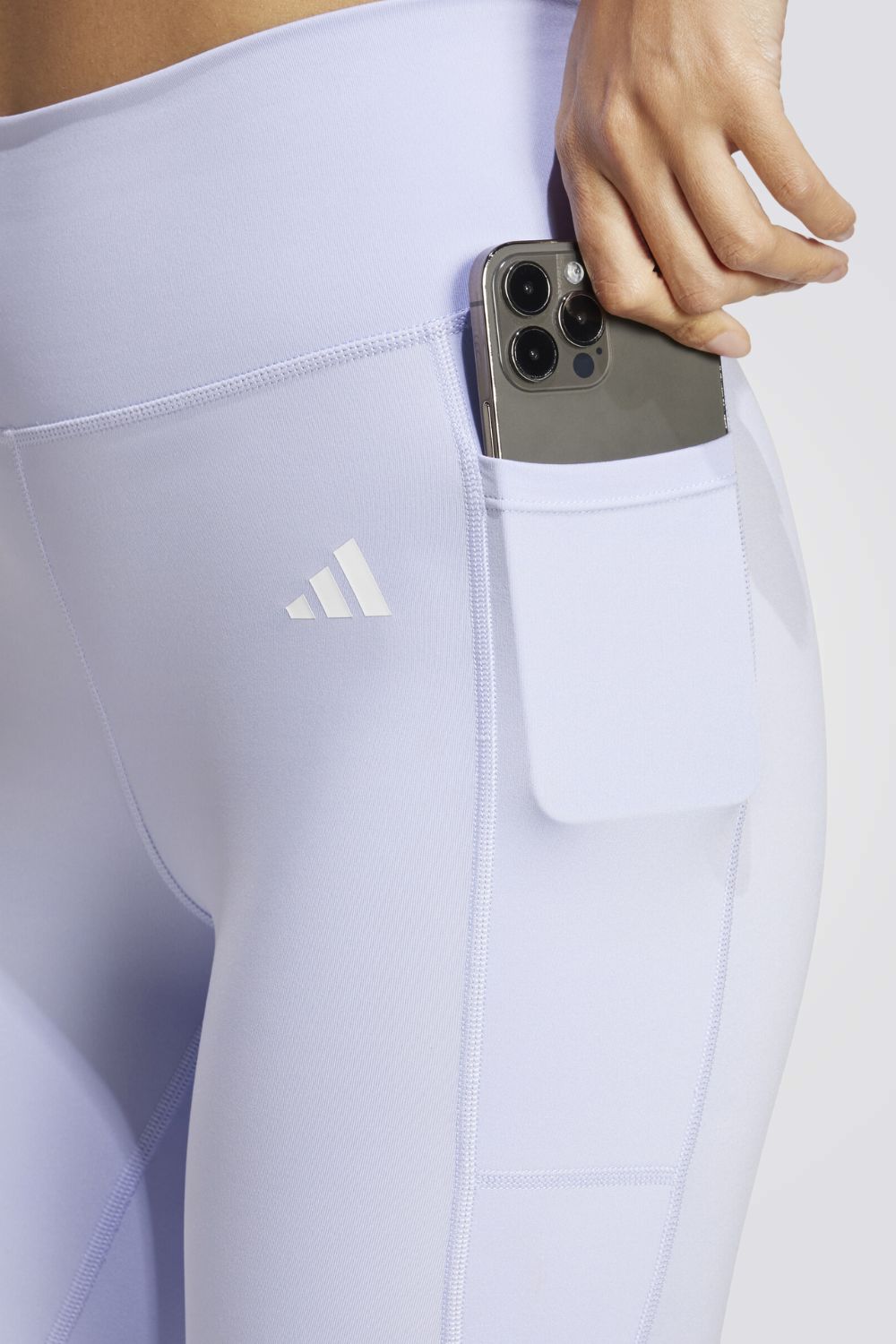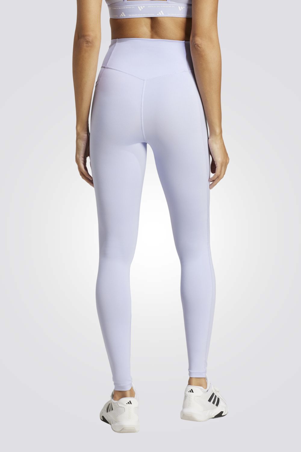 טייץ ארוך מבית המותג ADIDAS לנשים בצבע סגול בהיר, בעל בד נוח, כיס ירך לאחסון דברים, עשוי בטכנולוגיה AEROREADY מנדף זיעה וסמל המותג בצבע לבן בקידמת הטייץ.