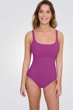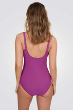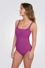 בגד ים שלם מבית המותג TURKIZ בגזרה מחטבת, עם קאפים מובנים, גב פתוח ומחשוף מרובע