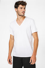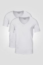 מארז חולצות טי שירט בייסיק חלקות לגבר מבית המותג Calvin Klein בצבע לבן עם מפתח צוואר וי ושרוולים קצרים.