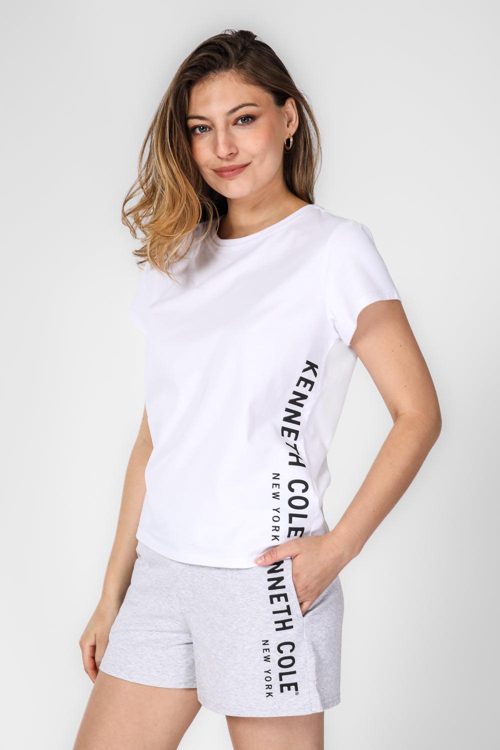 KENNETH COLE - סט פיג'מה קצרה לנשים בצבע לבן ואפור - MASHBIR//365