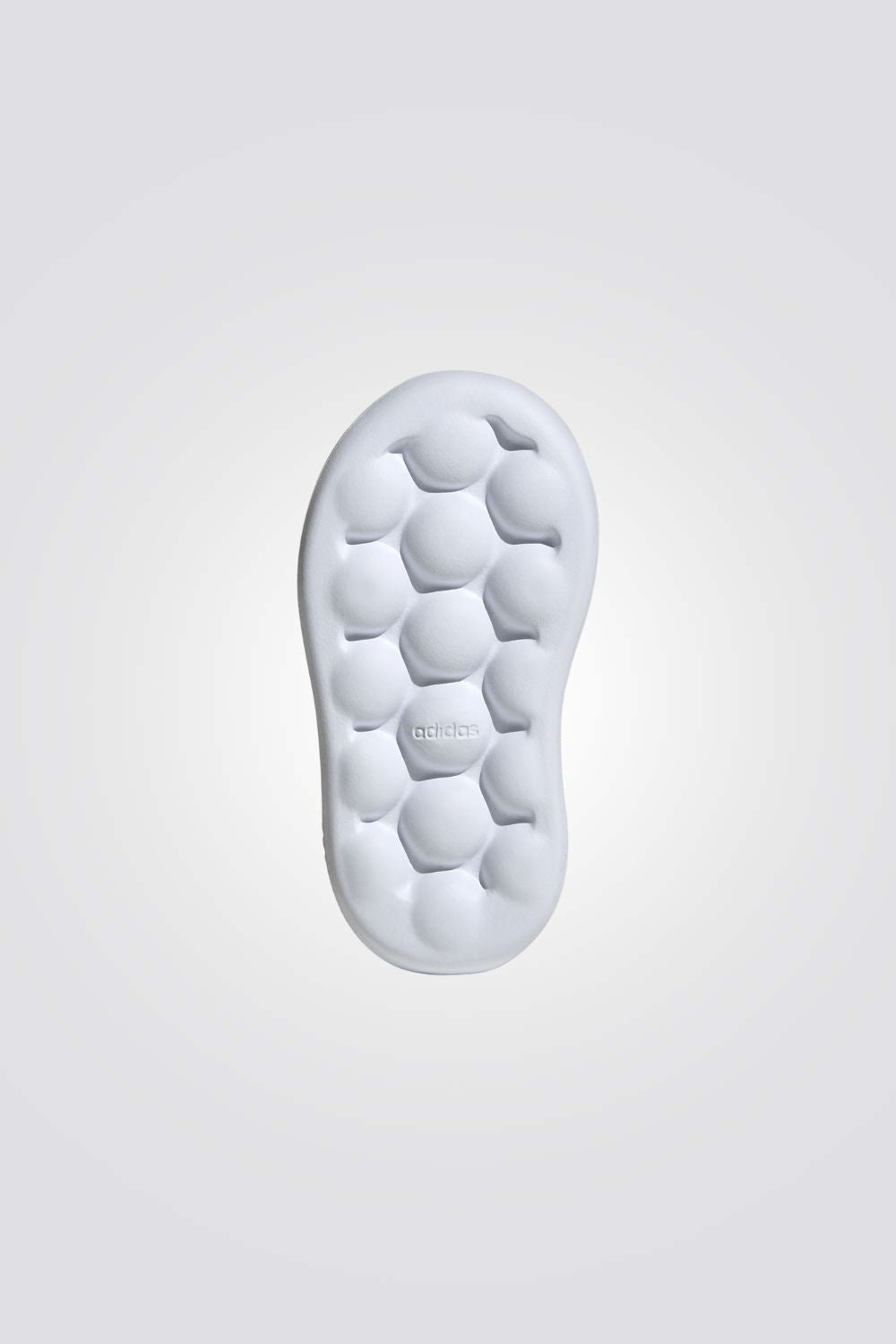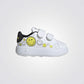 נעליים לתינוקות מבית המותג ADIDAS, בצבע לבן עם הדפסי סמיילי ,נוחות וקלילות , חלק עליון עם סגירת סקוץ', וסוליית Bubblecomfy רכה וגמישה.