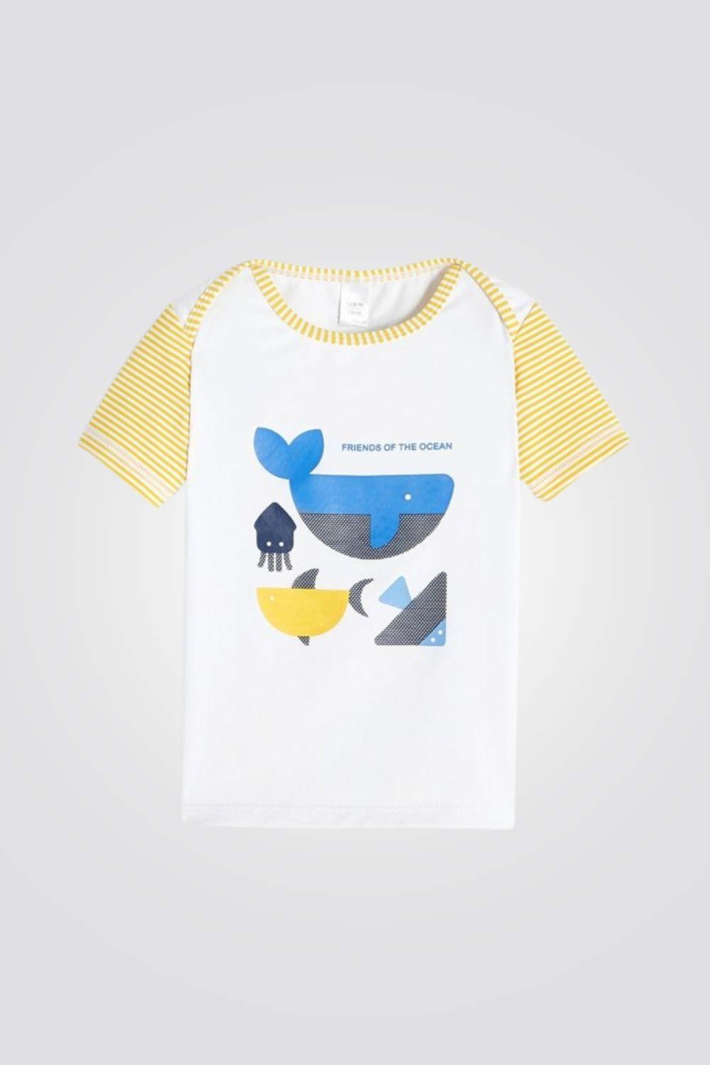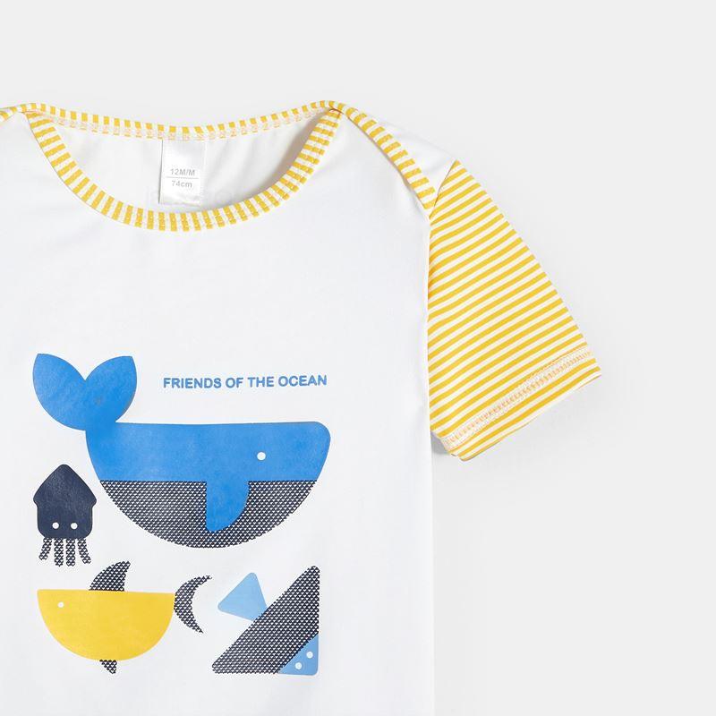 חולצה עם הגנת UV לתינוקות. חולצה במוטיב של חיות הים, שייך למותג OBAIBI.