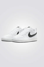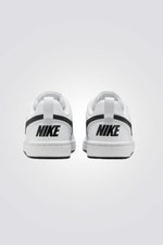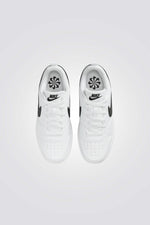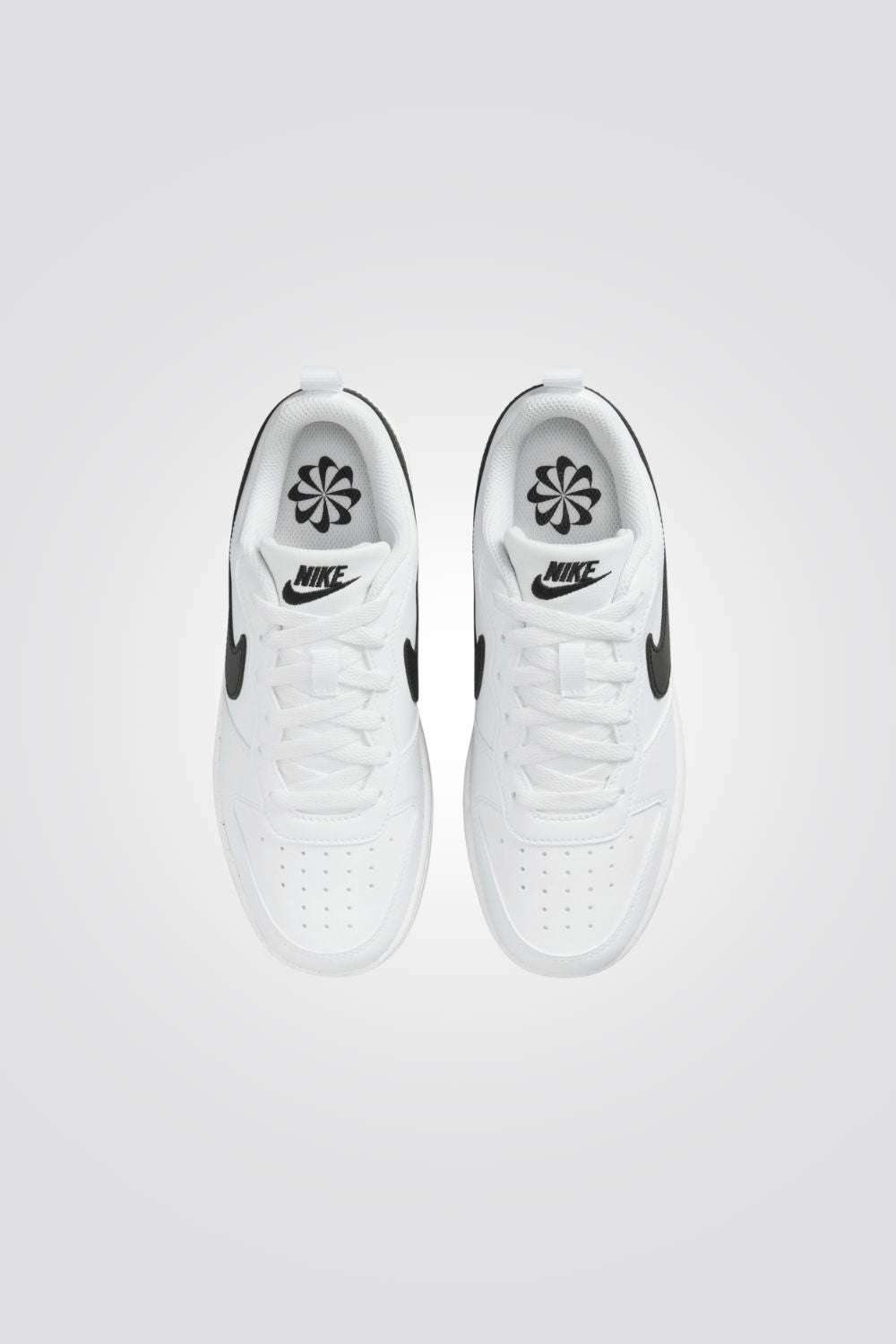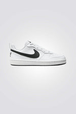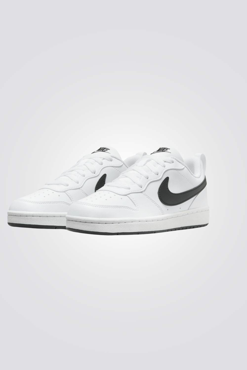 סניקרס לילדים מבית המותג NIKE, בצבע לבן ושחור, בעיצוב קלאסי ומדוייק, סולייה ישרה המספקת נוחות וקשירה שרוכים .