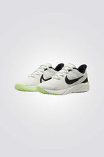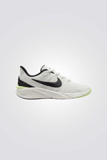 נעלי ספורט לילדים מבית המותג NIKE, בצבע אפור ירוק ושחור,בעלות מדרס פנימי רך במיוחד שעוטף את הרגל בנוחות בלתי מתפשרת. סולייה חיצונית עמידה שמספקת אחיזה מלאה בקרקע.