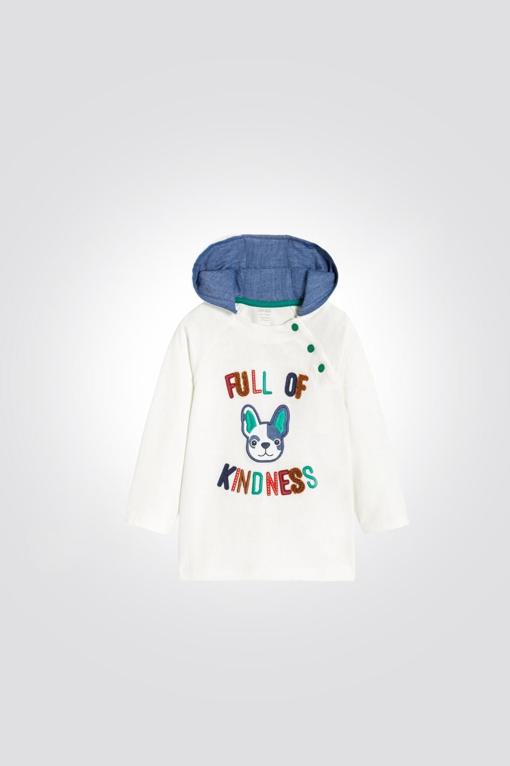 סווטשירט תינוקות לבן עם ריקמה וקאפוצון ג'ינס