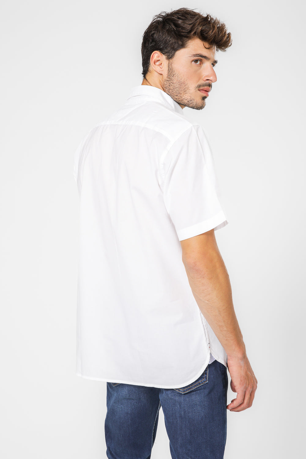 חולצה מכופתרת קצרה לגברים בצבע לבן