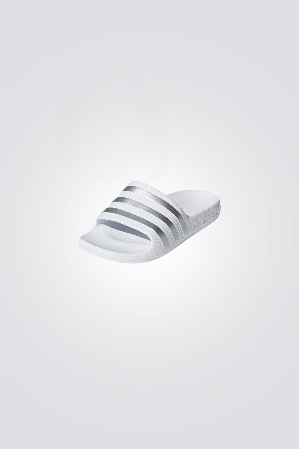 כפכפים לנוער ADILETTE AQUA בצבע לבן וכסוף