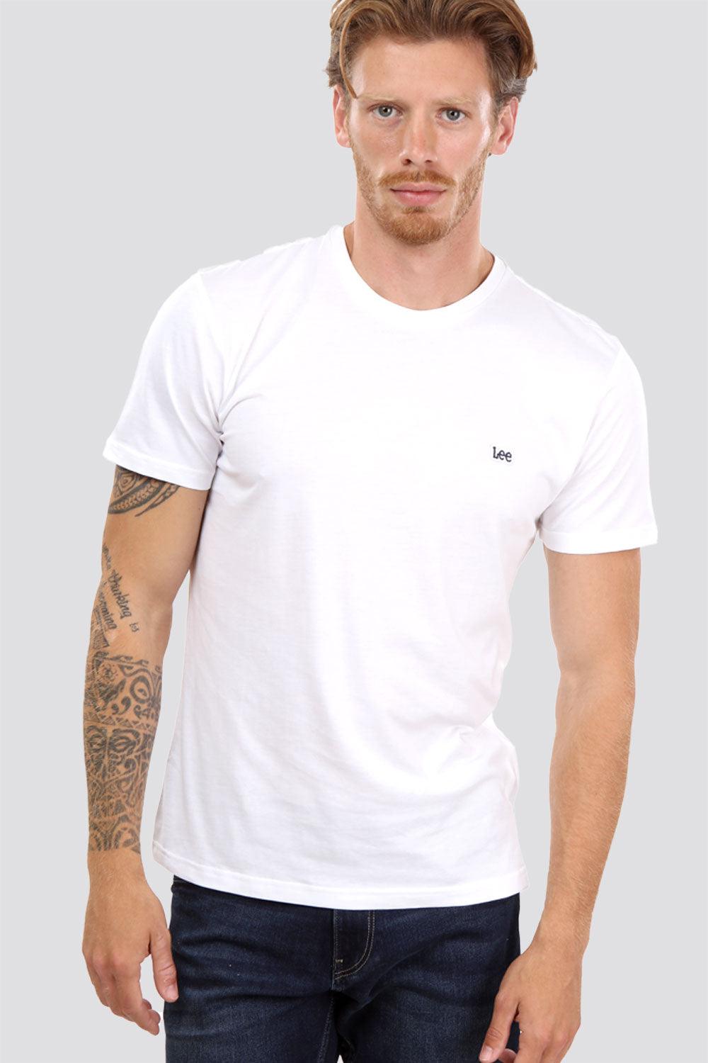 טישירט לבנה מבית המותג LEE. טישירט בצבע לבן שרוולים קצרים וצווארון עגול, לוגו רקום בקדמת החולצה.