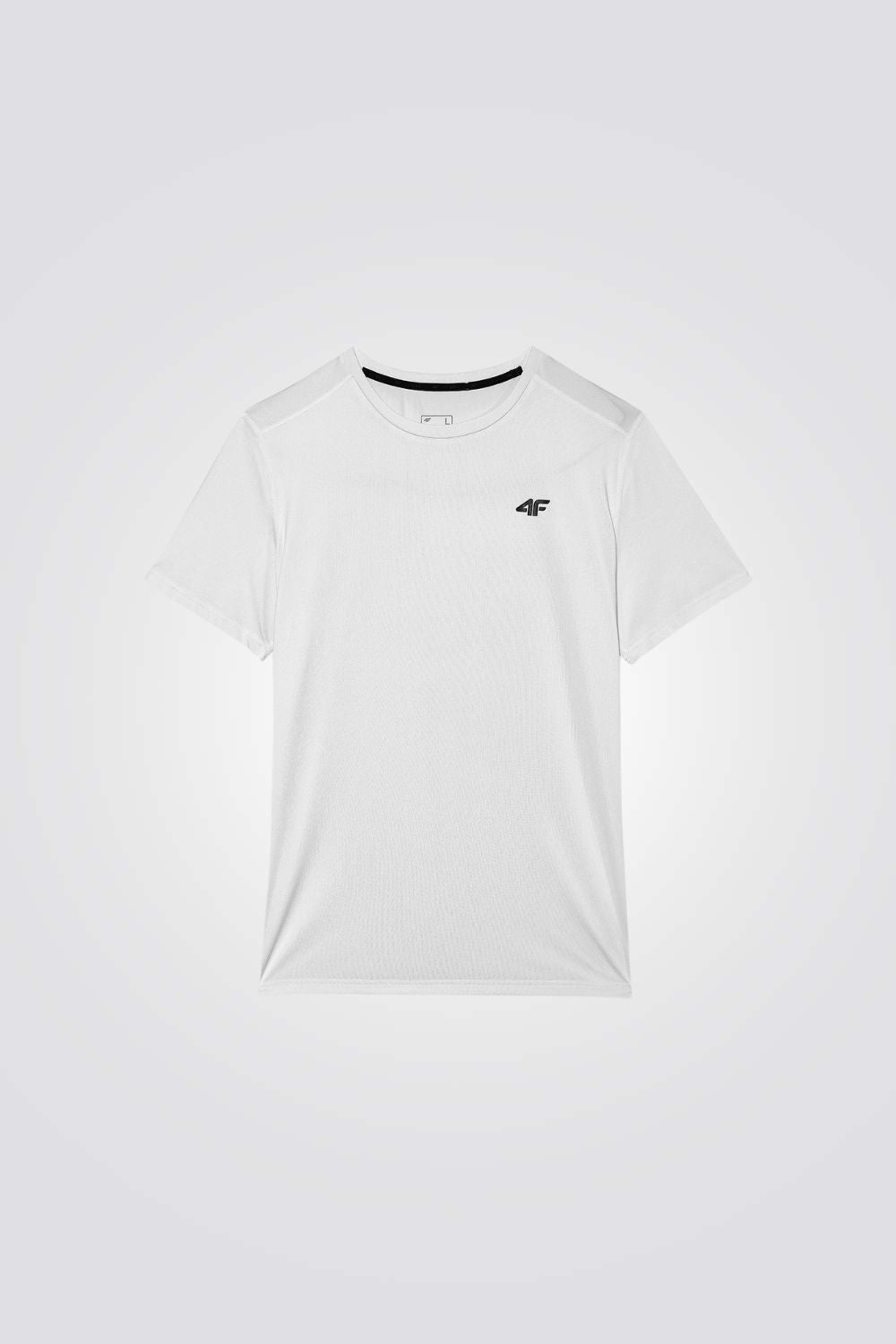 טישירט לגברים מבית המותג F4, בצבע לבן , נוחה וקלילה ומתאימה לאימונים, עם שרוולים קצרים וצווארון עגול.