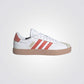 נעלי סניקרס לנשים מבית המותג ADIDAS בצבע לבן ואדום עם לוגו בעיטור מוזהב, בטנה רכה השומרת על כף הרגל וסוליית גומי גמישה להליכות מרובות, קלאסיות ומתאימות למגוון סגנונות לבוש.