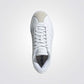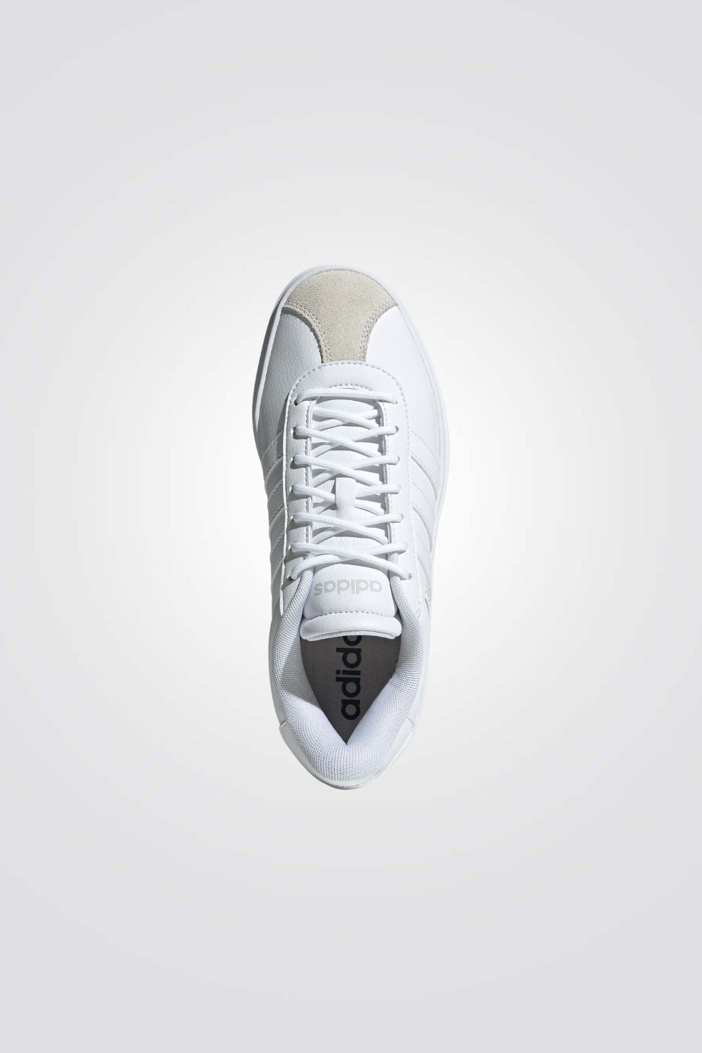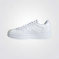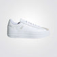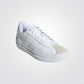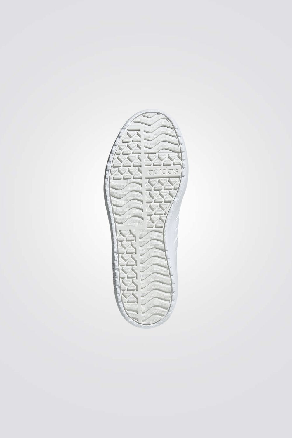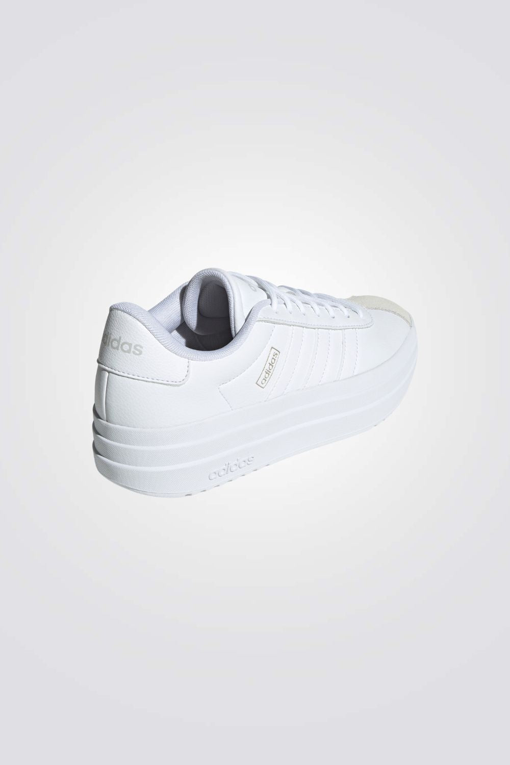 נעלי סניקרס מבית המותג ADIDAS בצבע לבן עם לוגו בצידי הנעל וסוליה חיצונית פלטפורמה מגומי.