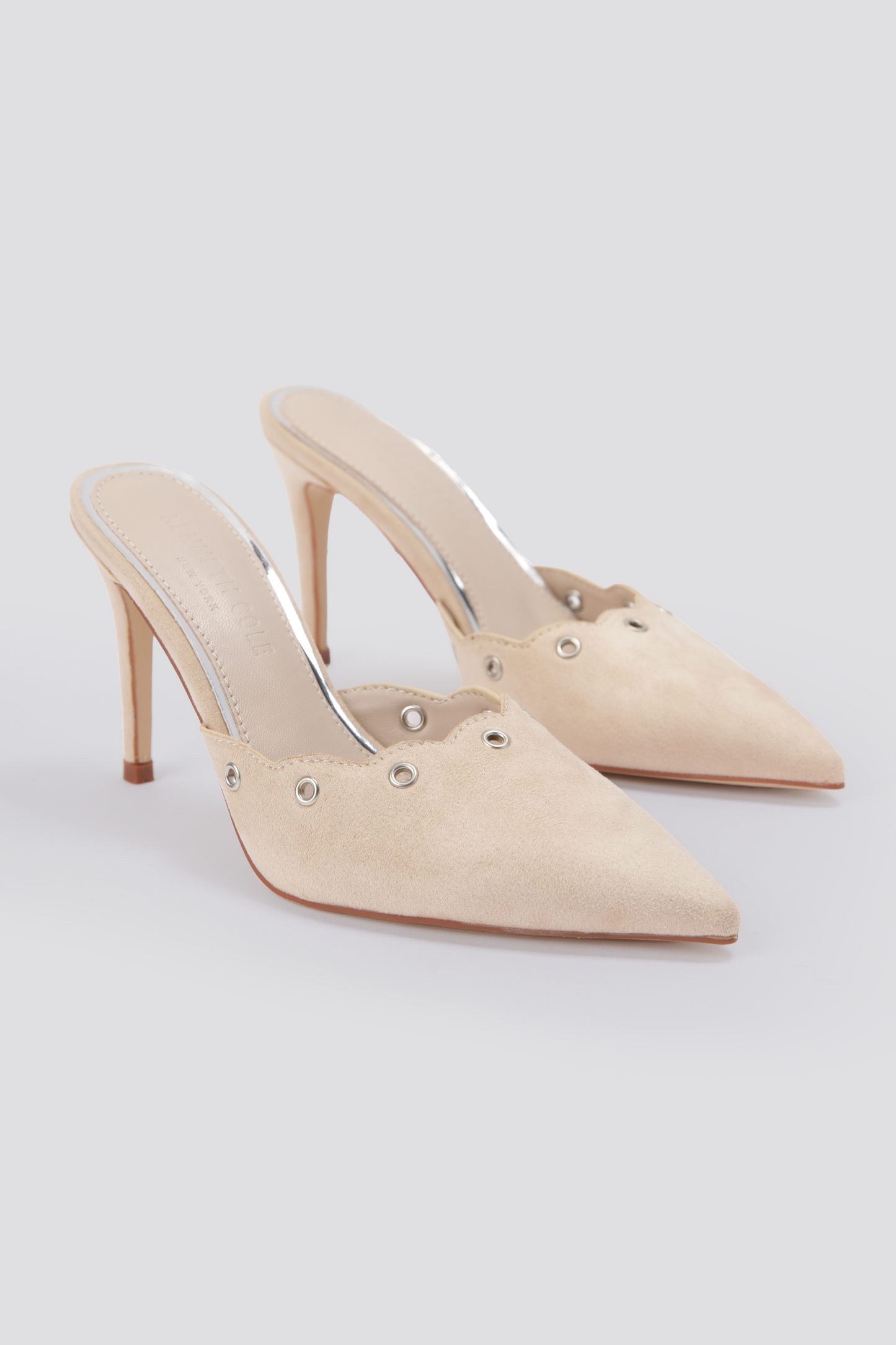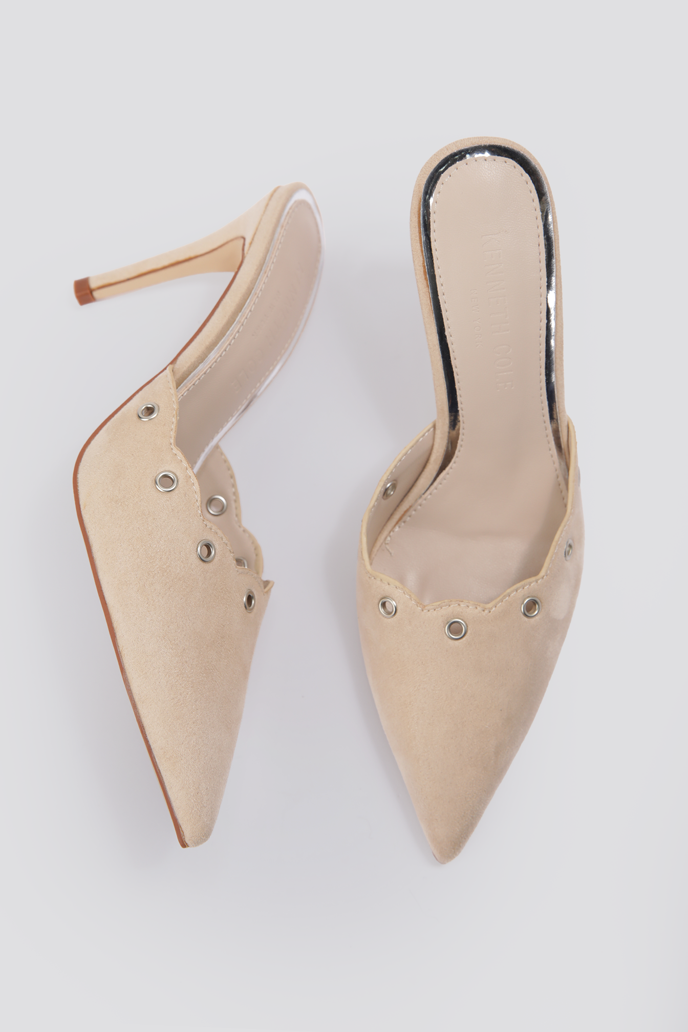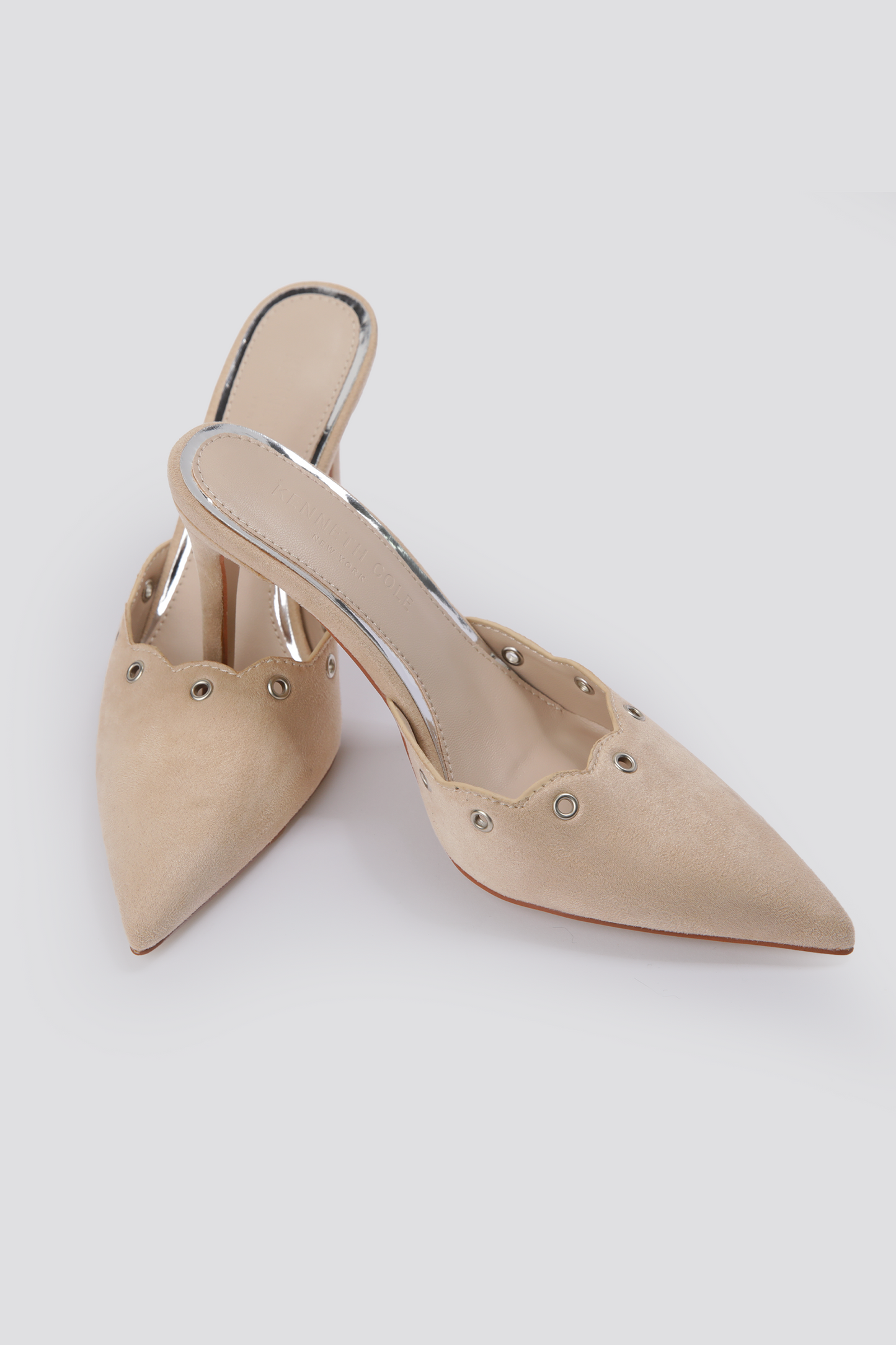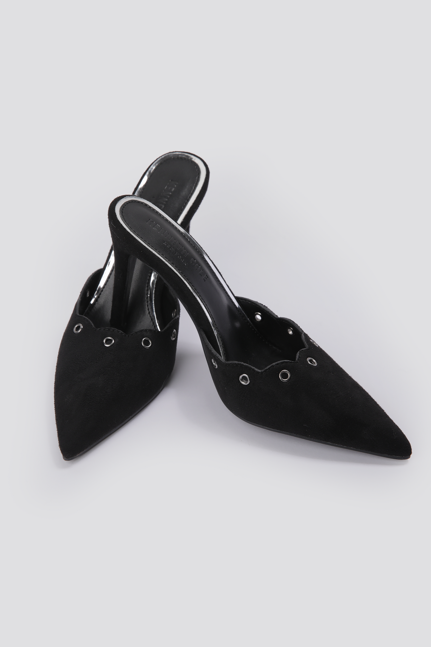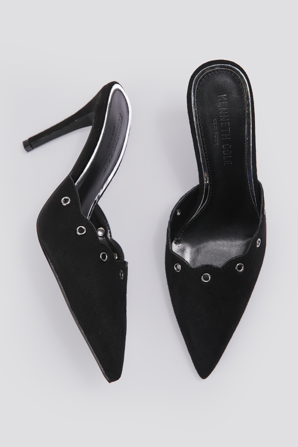 כפכפי עקב דמוי זמש מבית המותג KENNETH COLE עם חרטום מחודד ועקב דק וגבוה.