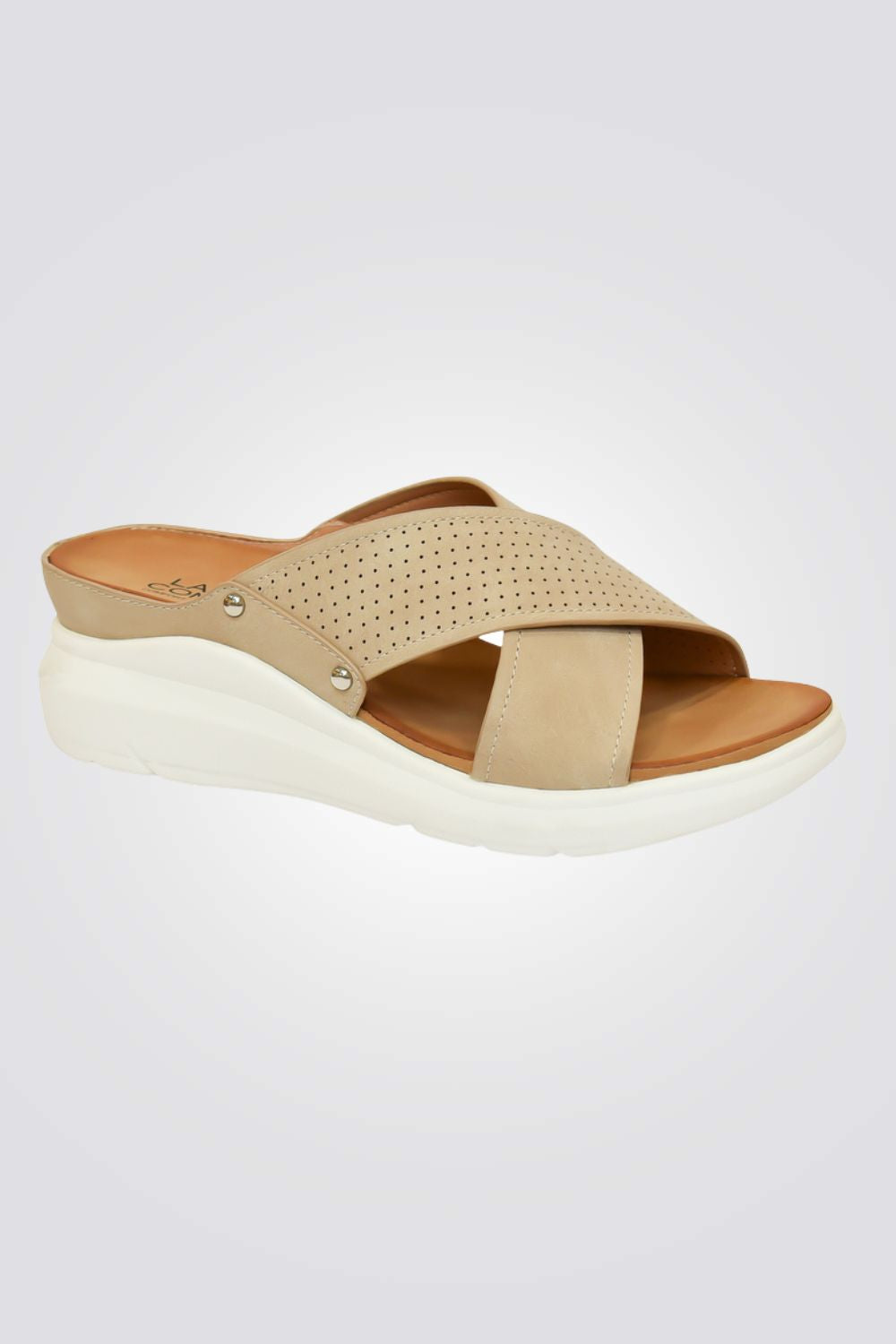 כפכפים מבית המותג LADY COMFORT בעלות מדרס פנימי רך במיוחד שעוטף את הרגל בנוחות בלתי מתפשרת. סולייה חיצונית עמידה שמספקת אחיזה מלאה בקרקע.