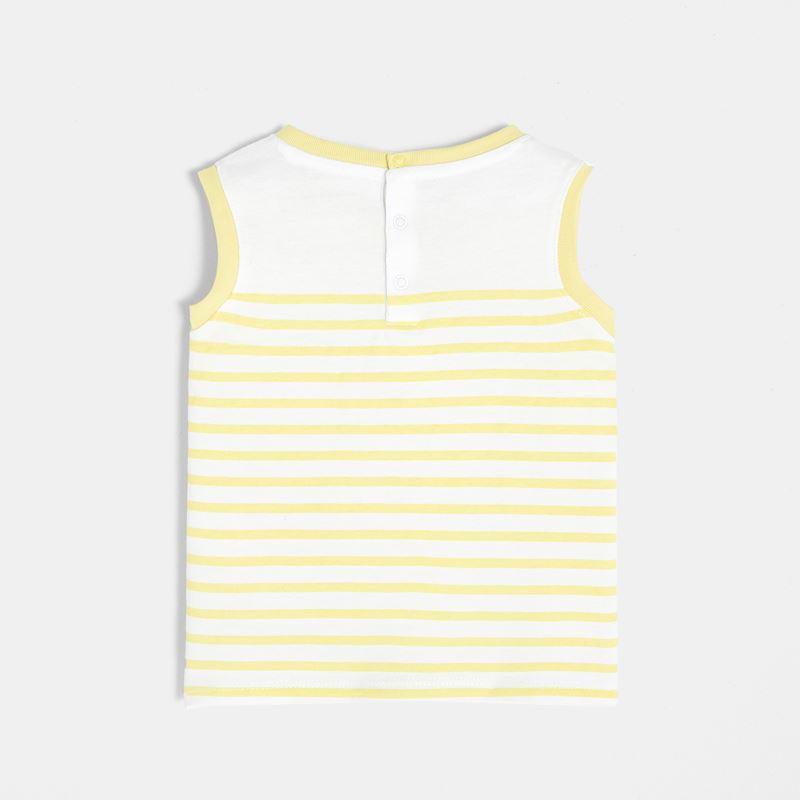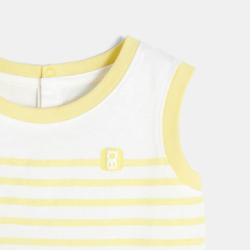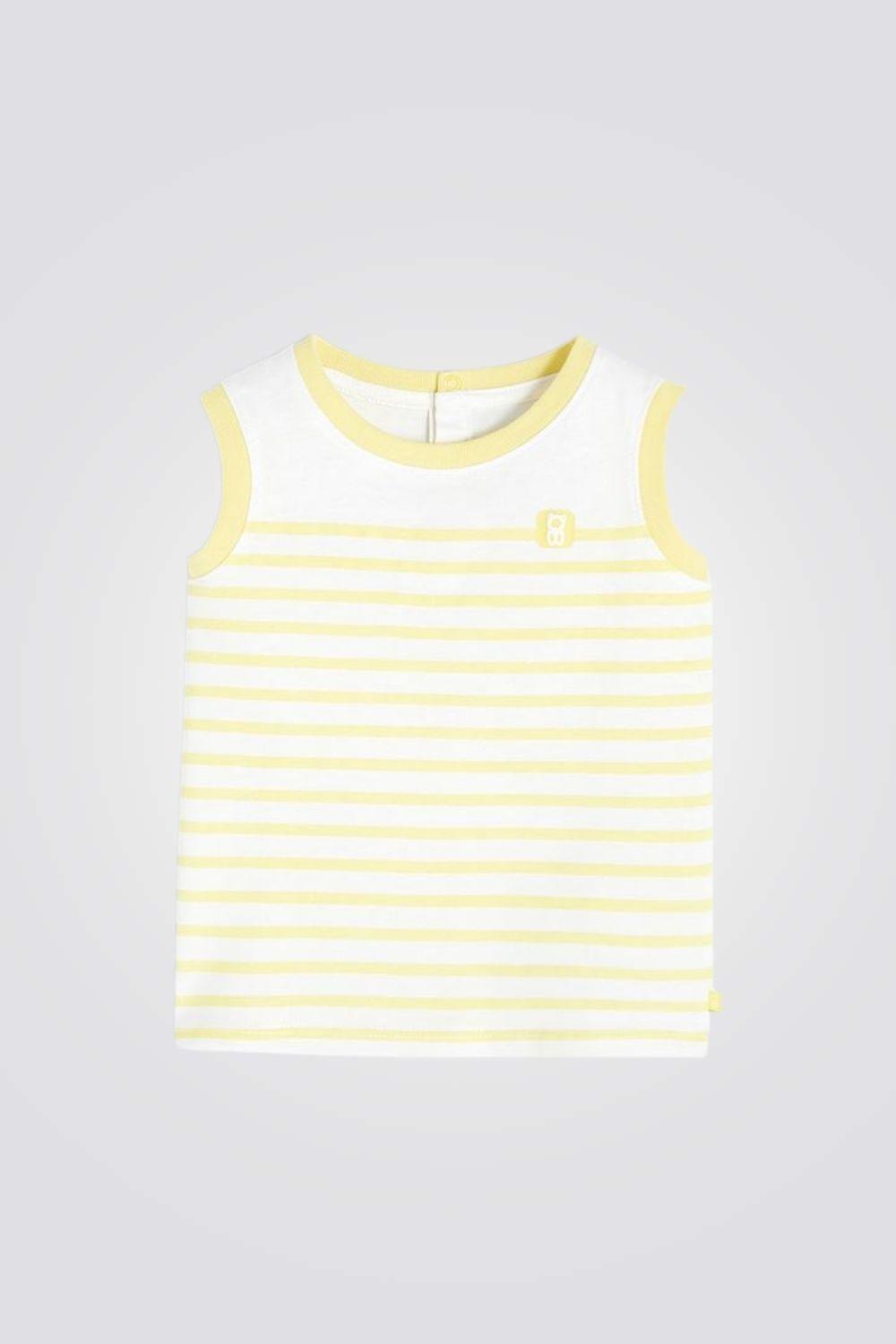 גופיה במוטיב של פסים במגוון צבעים. גופיה לתינוקות לימי הקיץ החמים. של המותג OBAIBI. הרכב בד: 100% כותנה.
