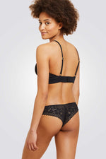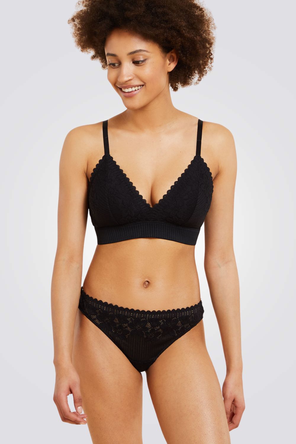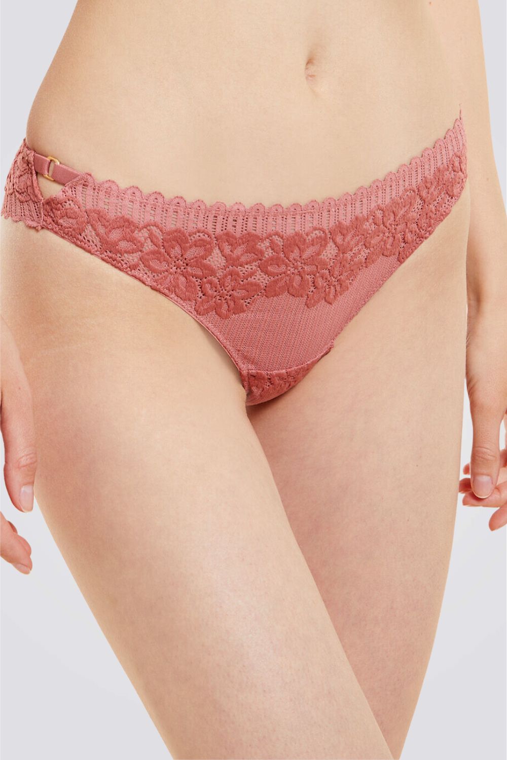 תחתונים לנשים מבית המותג ETAM עשויה בד תחרה סינטטי בגזרה ברזילאיית עם בטנה רכה וטבעת קטנה בצידי המותן.
