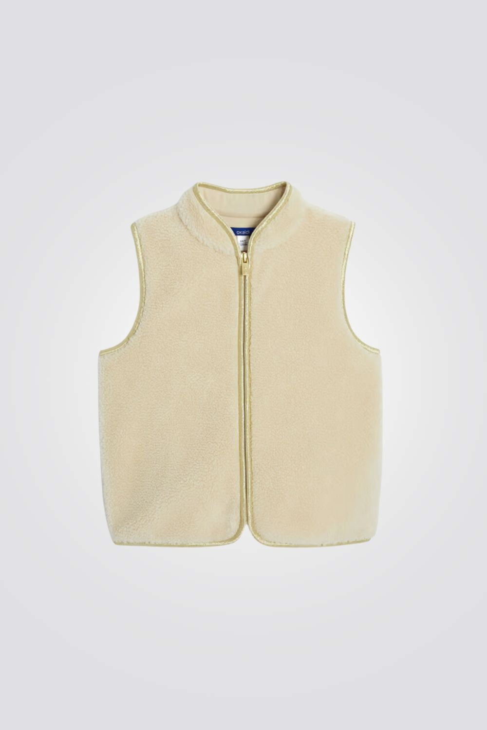 ווסט לילדות מבית המותג OKAIDI, מחמם ונעים עם דמוי פרווה מבחוץ , צווארון עגול גבוהה ופתיחת רוכסן .